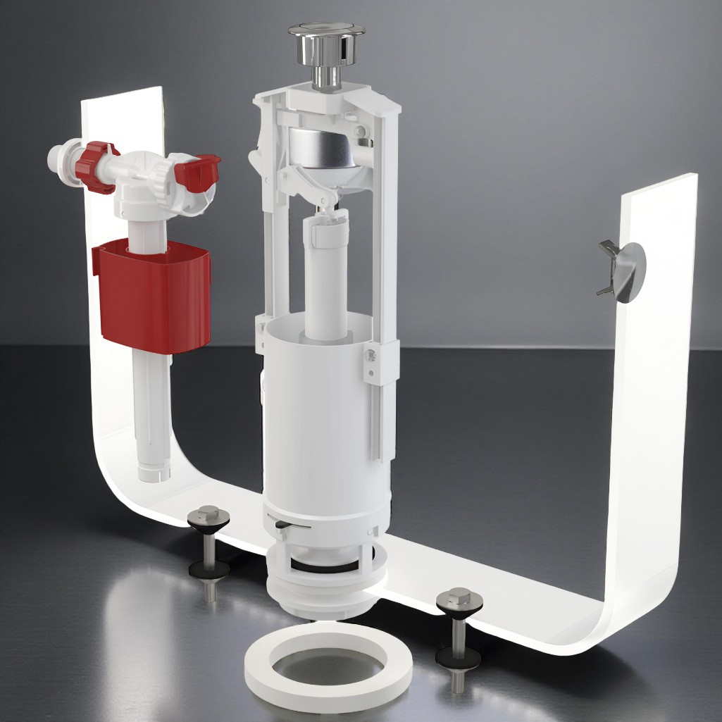 Комплект арматуры Alcaplast SA2000 для унитаза, боковой подвод, 1/2", пластик — полная выпускная система с механизмом бокового подвода воды и стоп-кнопкой. Включает впускной механизм и спусковое устройство SA2000 с функцией регулировки объёма слива. Конструкция из ударопрочного пластика обеспечивает долговечность и совместимость с большинством керамических бачков.
