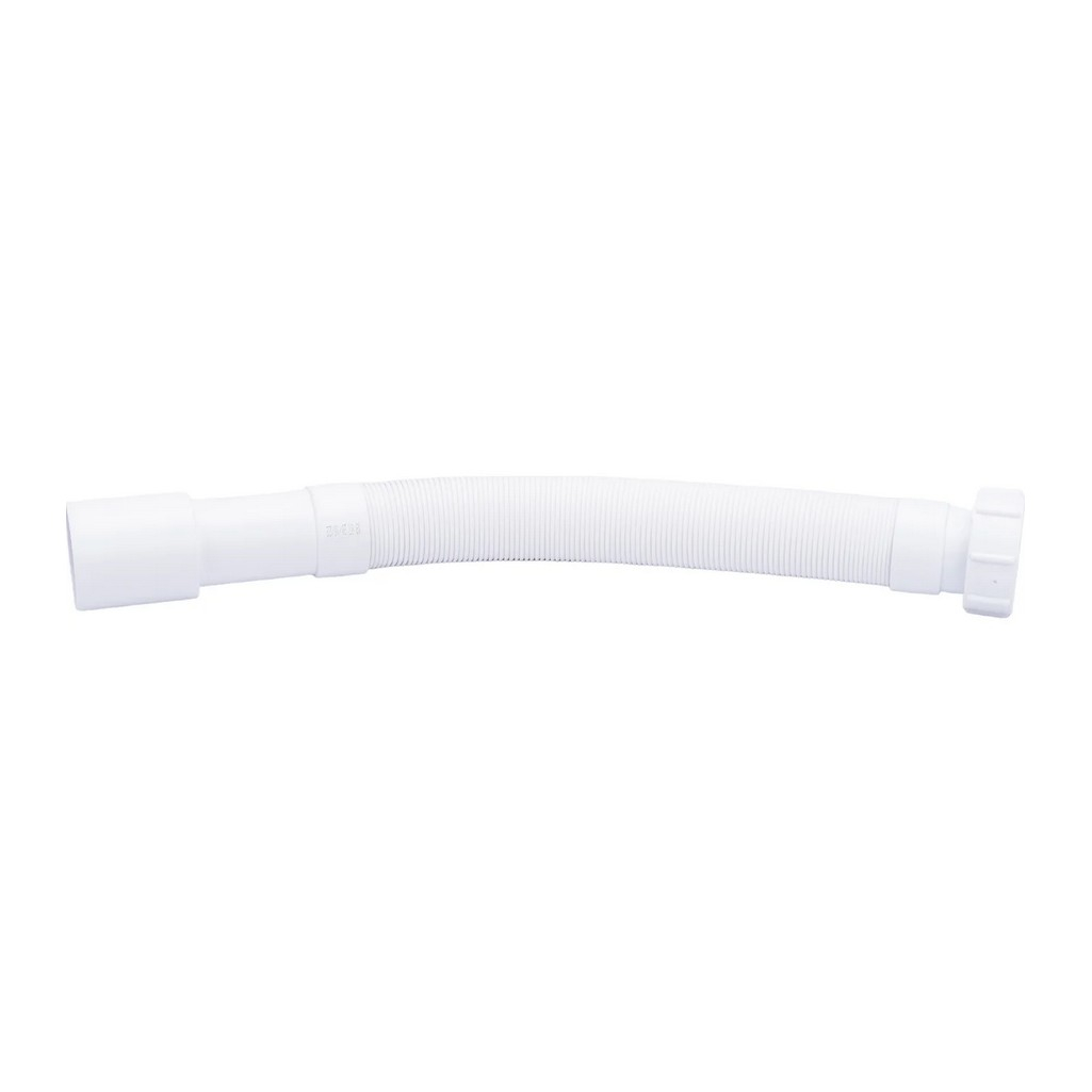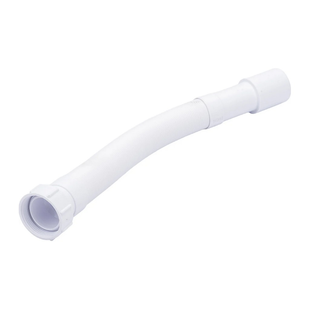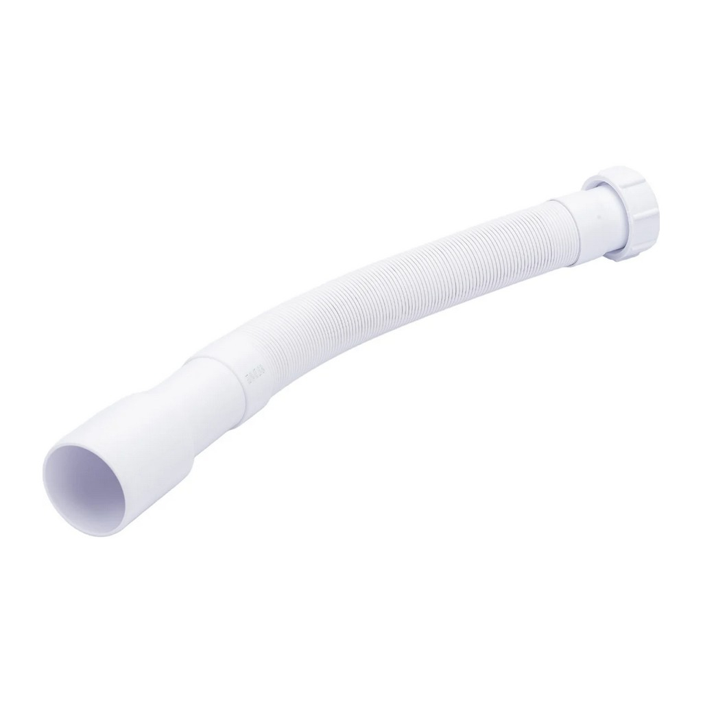 Труба гофрированная McAlpine MRMF 6 гибкая, раздвижная, вход 1 1/2", выход 40/50 мм, длина 1 м, белая — труба для подключения сифонов сантехники к системе канализации. Вход с резьбой 1½" и накидной гайкой подходит для большинства стандартных сифонов, выход диаметром 40/50 мм соединяется с канализационным отводом. Регулируемая длина до 1 метра компенсирует смещение.
