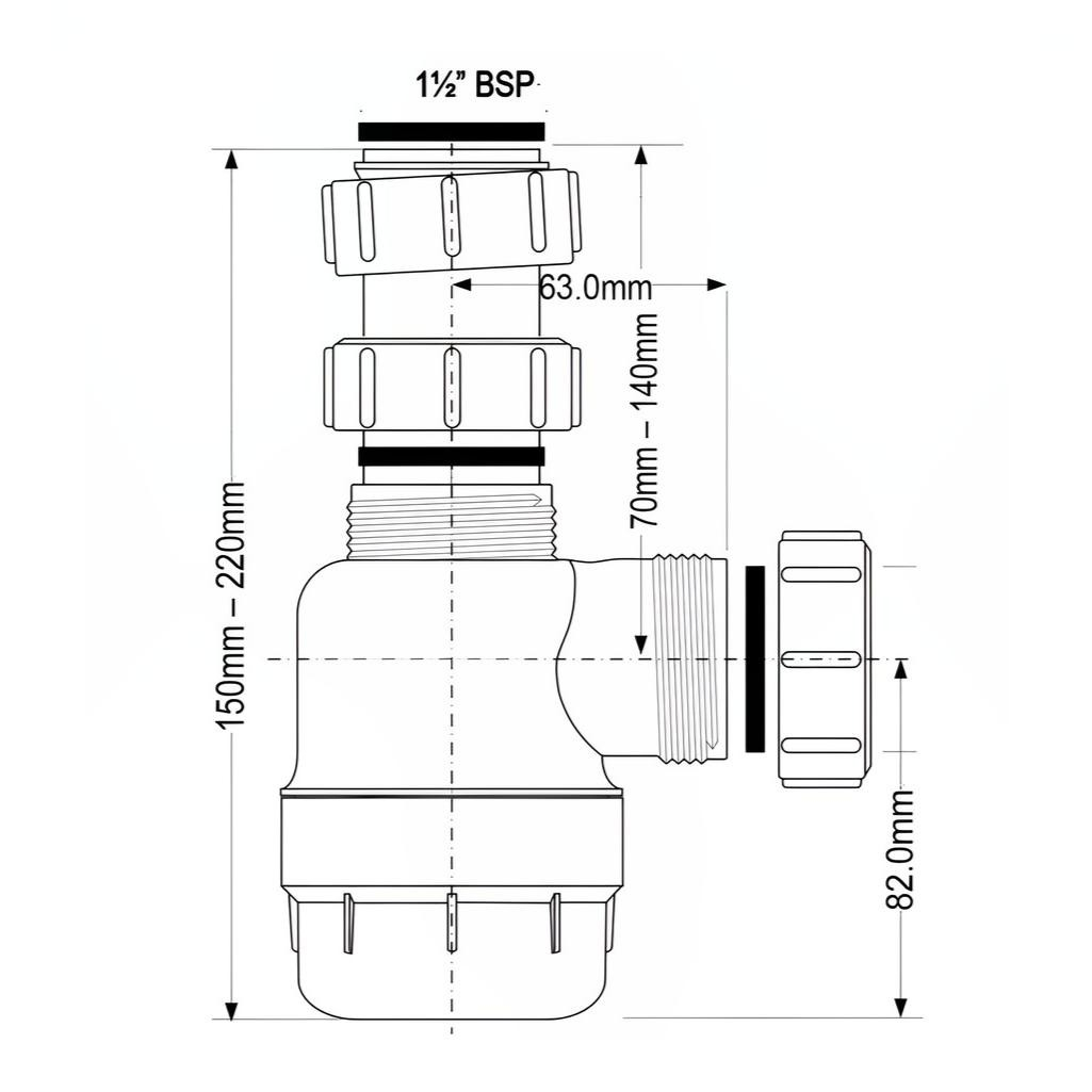 Сифон бутылочный McAlpine MRSK2-NW для раковины 40-1 1/2", без горловины, белый — компактная сливная система для умывальников без перелива. Конструкция без горловины позволяет выполнить монтаж в ограниченном пространстве. Комплектуется выпуском с резьбой 1½" и гибкой гофротрубой для подключения к канализации.