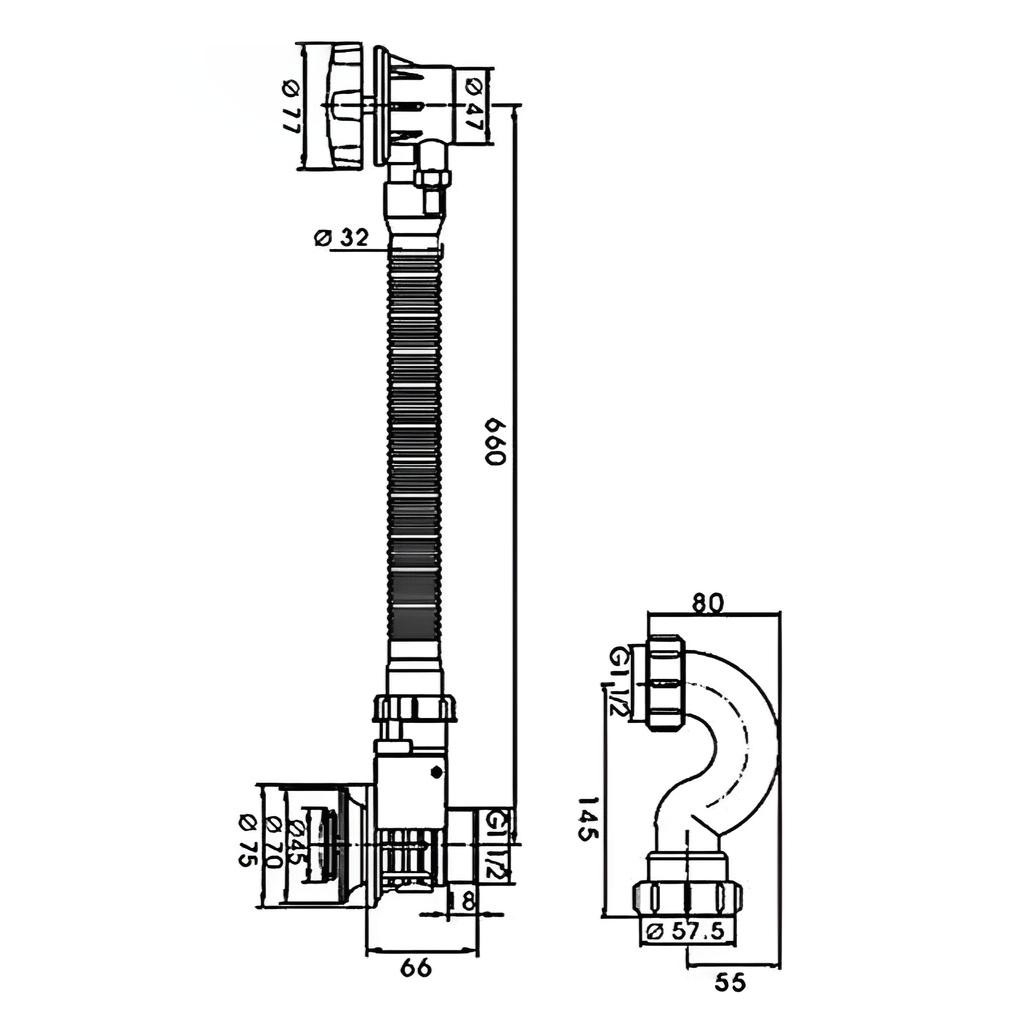 • Компактный трубный дизайн для экономии пространства под ванной и простоты монтажа.