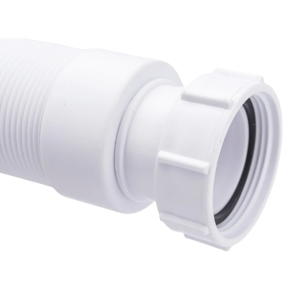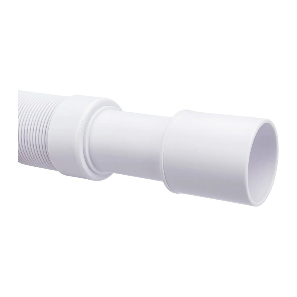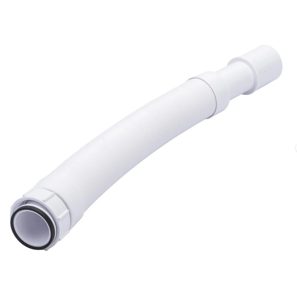 Труба гофрированная McAlpine MRMF2 гибкая, раздвижная, вход 1 1/2", выход 40/50 мм, длина 1 м, белая — труба для подключения сифонов сантехники к системе канализации. Вход с резьбой 1½" и подходит для большинства стандартных сифонов, выход диаметром 40/50 мм соединяется с канализационным отводом. Регулируемая длина до 1 метра позволяет компенсировать смещение.
