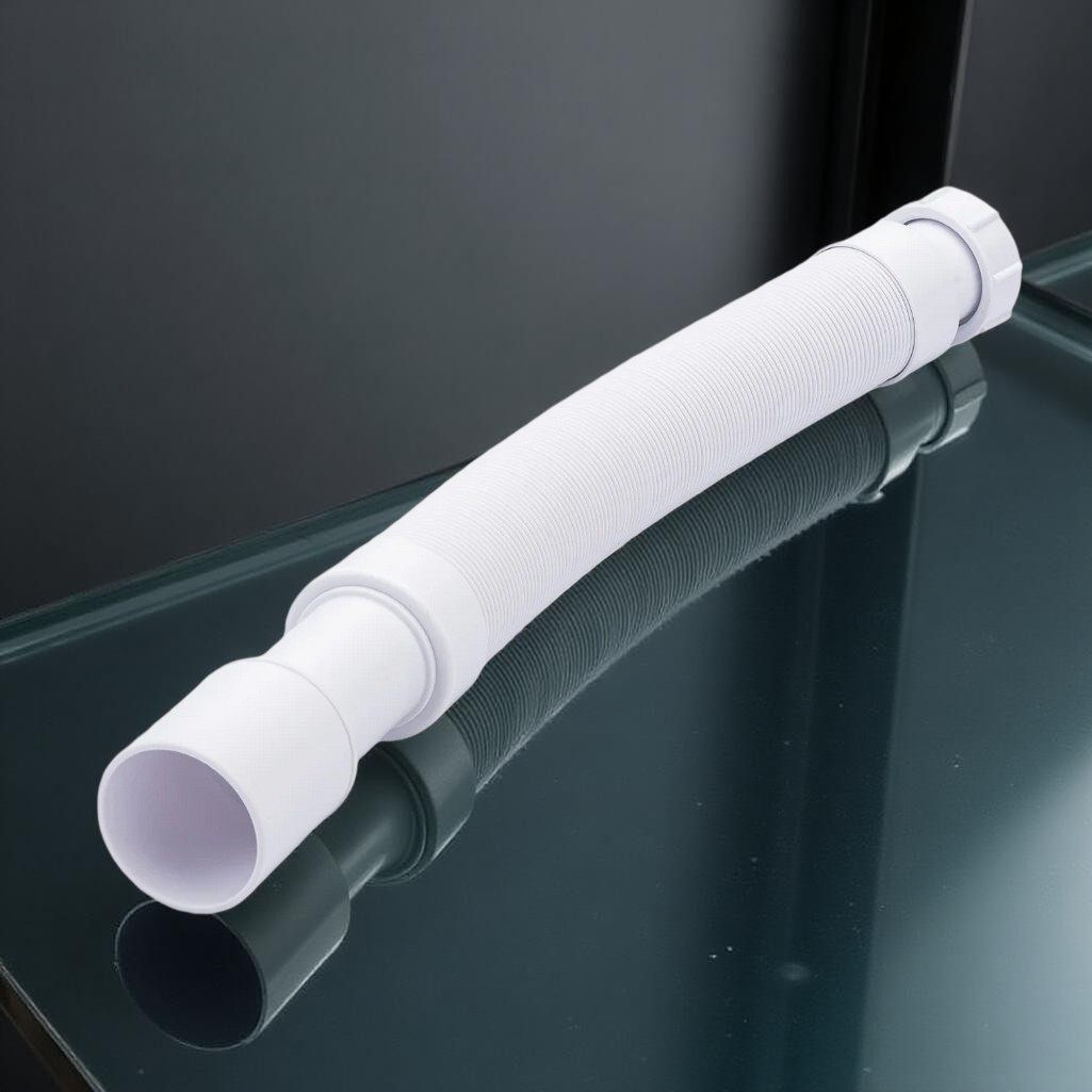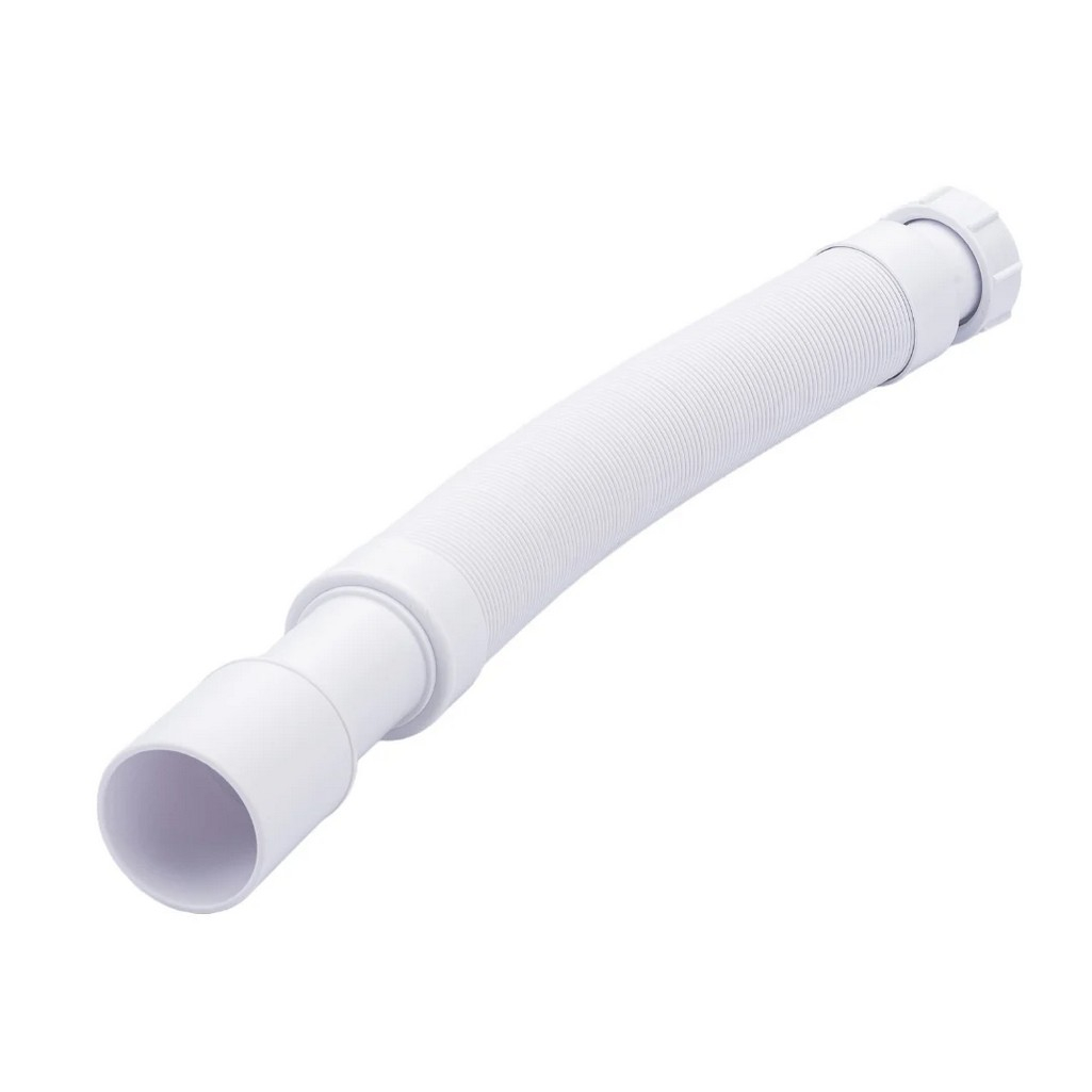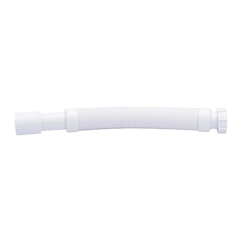 Труба гофрированная McAlpine MRMF2 гибкая, раздвижная, вход 1 1/2", выход 40/50 мм, длина 1 м, белая — труба для подключения сифонов сантехники к системе канализации. Вход с резьбой 1½" и подходит для большинства стандартных сифонов, выход диаметром 40/50 мм соединяется с канализационным отводом. Регулируемая длина до 1 метра позволяет компенсировать смещение.