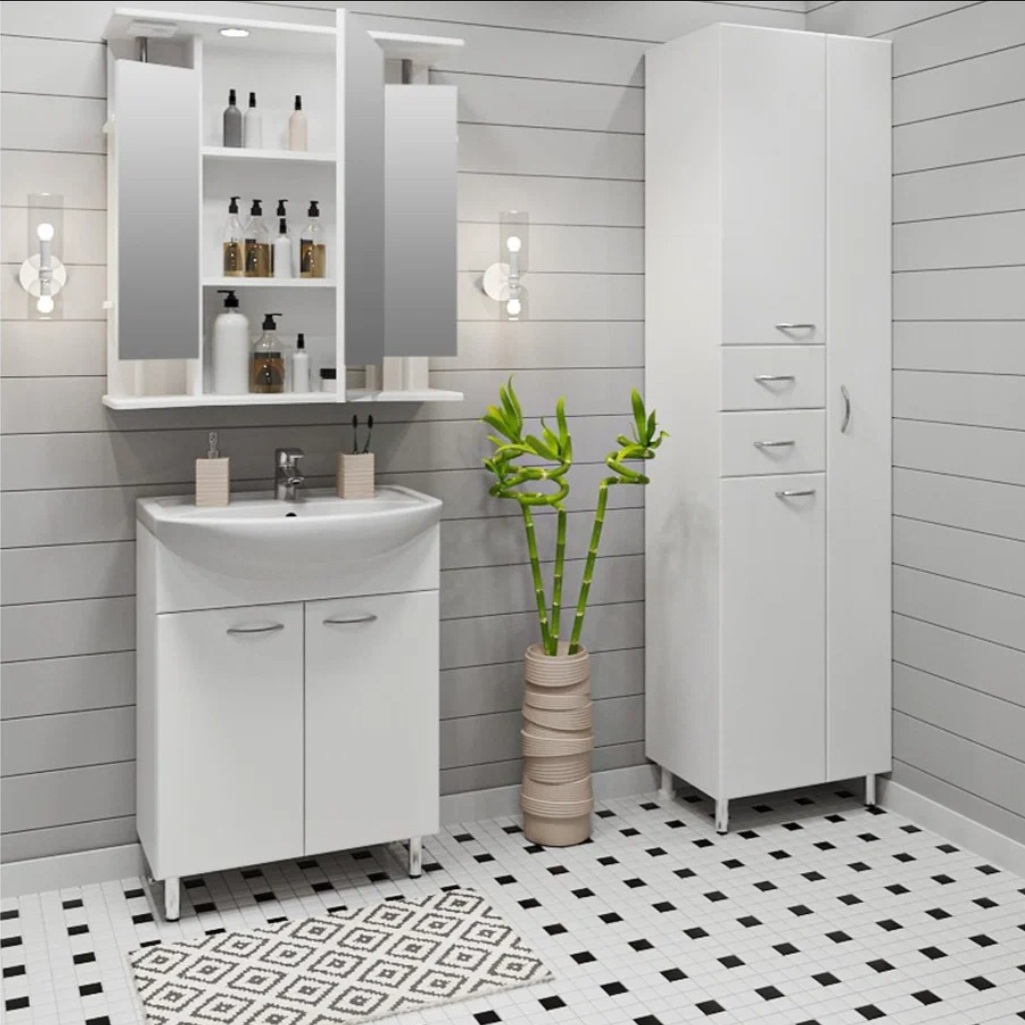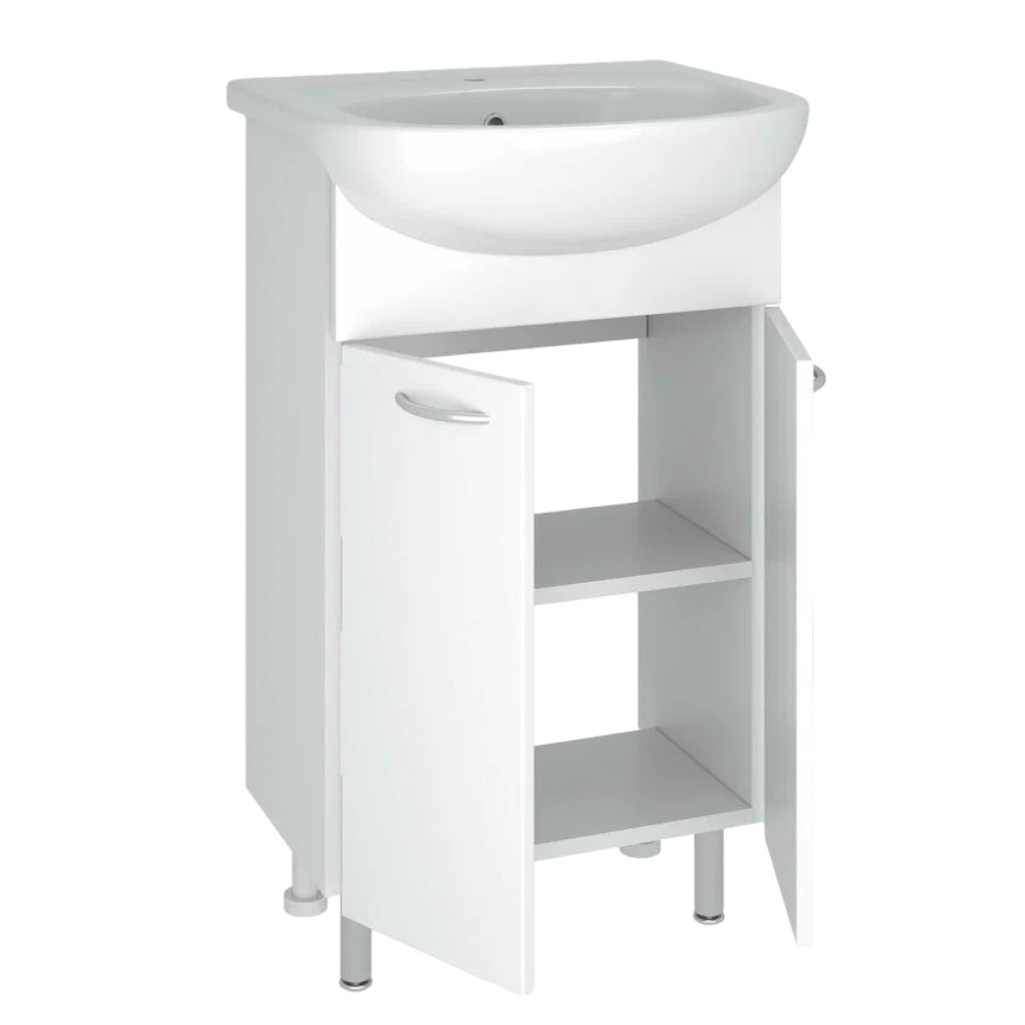 Тумба для ванной комнаты Руно Уют 50, напольная, белая + раковина Уют 50, белая