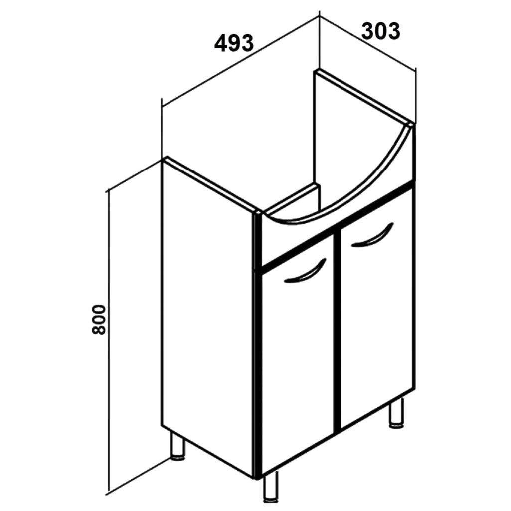 Технические характеристики тумбы Руно Уют 50, напольная, белая + раковина Уют 50, белая