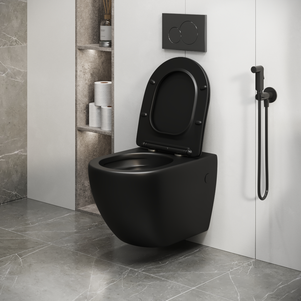 - Унитаз Grossman GR-4411B (560х360х350) Чёрный,подвесной,безободковый с тонкой крышкой