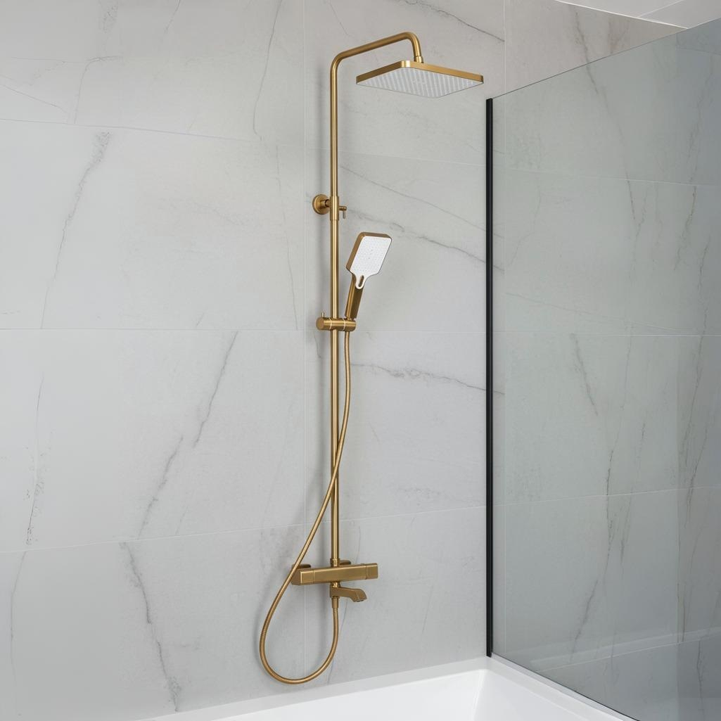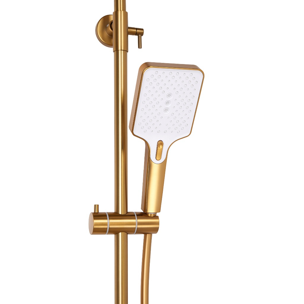 Душевая система AETHERPRIDE A2491-3 сатин золотой, термостат, тропический душ предназначена для размещения в ванной комнате или душевой кабине. Система изготовлена из латуни, отличается отличается долговечностью и надежностью. Термостат для комфортной настройки температуры воды имеет 3 режима работы. Тропический душ создан для комфорта и удобства. Современный дизайн системы украсит интерьер любой ванной комнаты. Встроенный мгновенный терморегулятор и датчик защищают от перепадов температуры и ожогов. Кнопка фиксации безопасной температуры обеспечивает дополнительный комфорт. Высокочувствительный ручной переключатель позволяет точно настроить термостатический регулятор в соответствии с потребностями. Шланг длиной 150 см обеспечивает максимальный комфорт при использовании. Верхний тропический душ размером 31×21 см дарит ощущение мягкого дождя, окутывая тело мягким, расслабляющим потоком. Ручной душ с тремя режимами позволяет настроить настроение: от нежного распыления до энергичного массажа. Душевая стойка предназначена для установки на стену и подходит как для душа, так и для ванны. Скрытый монтаж придает аккуратный и стильный вид вашему санузлу. Душевая система с термостатом из коллекции AETHERPRIDE разработана итальянским брендом по оригинальной технологии. Это гарантии высокого качества, надежность и долговечной эксплуатации душевой системы AETHERPRIDE A2491-3.