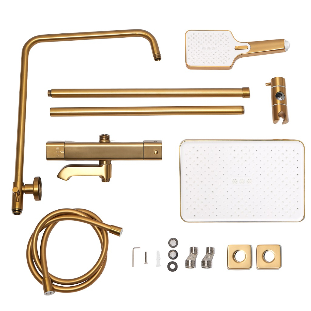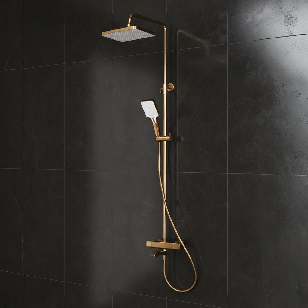 Душевая система AETHERPRIDE A2491-3 сатин золотой, термостат, тропический душ