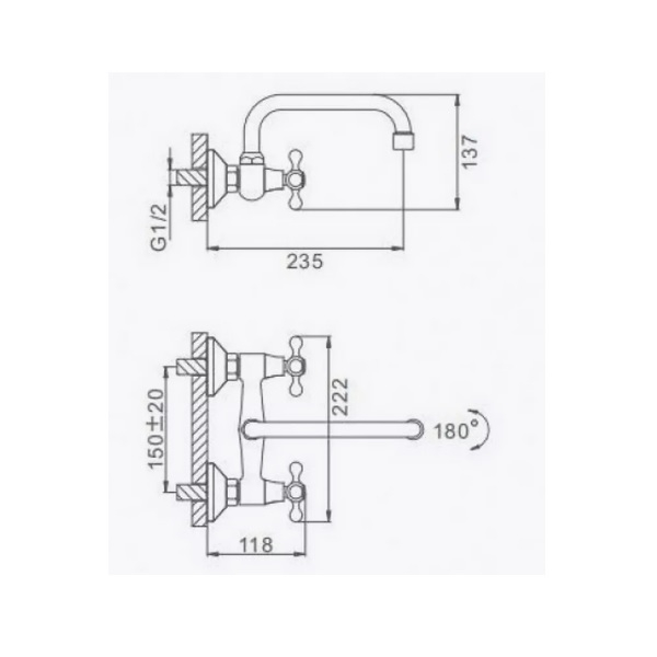 | Вращение излива | 180 градусов |