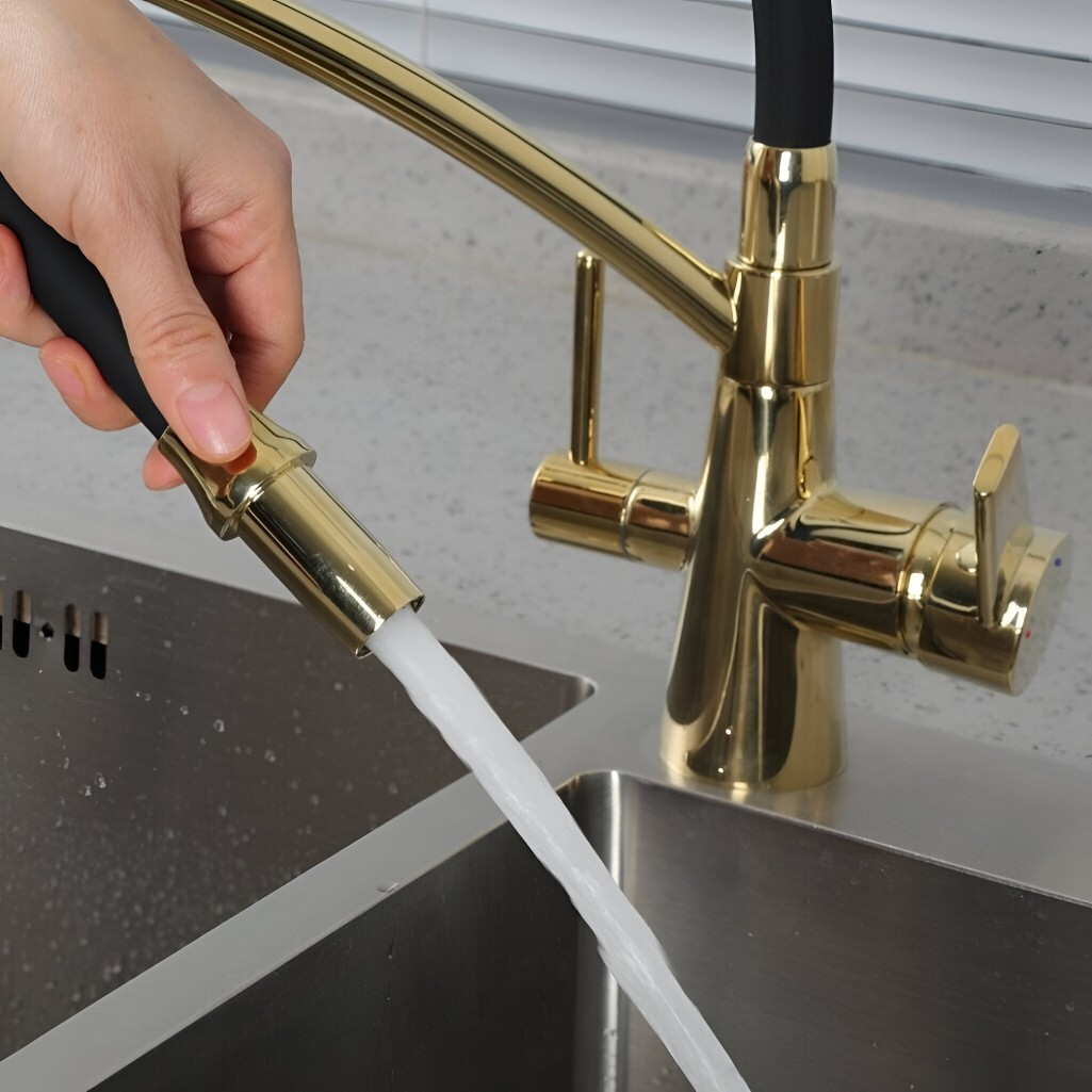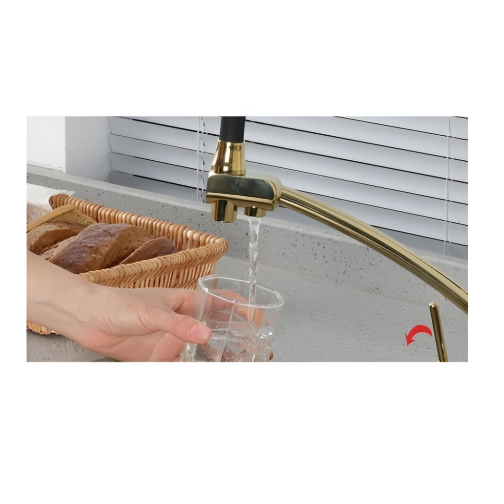 Смеситель для кухни Gappo G4398-13 гибкий излив, встроенный фильтр для питьевой воды, золото