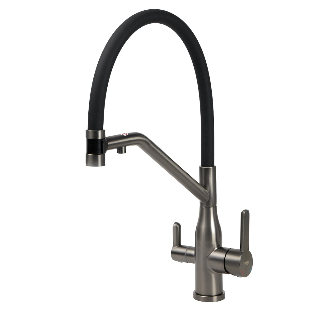 - Смеситель для кухни с подключением фильтра питьевой воды AETHERPRIDE A4398-89 (Оружейная сталь)
