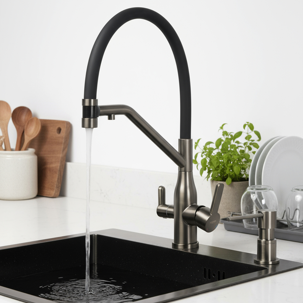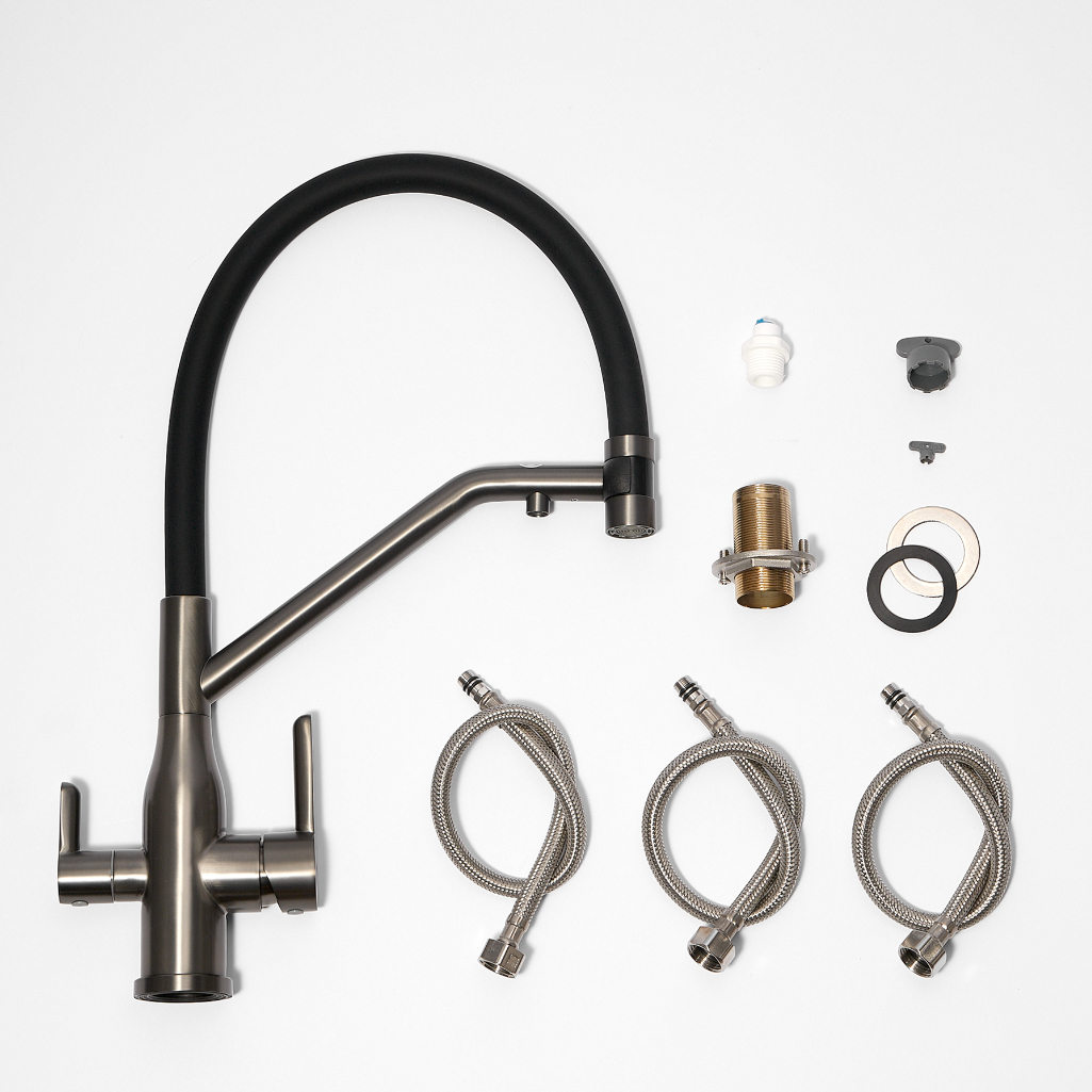 Смеситель для кухни AETHERPRIDE A4398-89 гибкий излив, для фильтра питьевой воды, цвет оружейная сталь