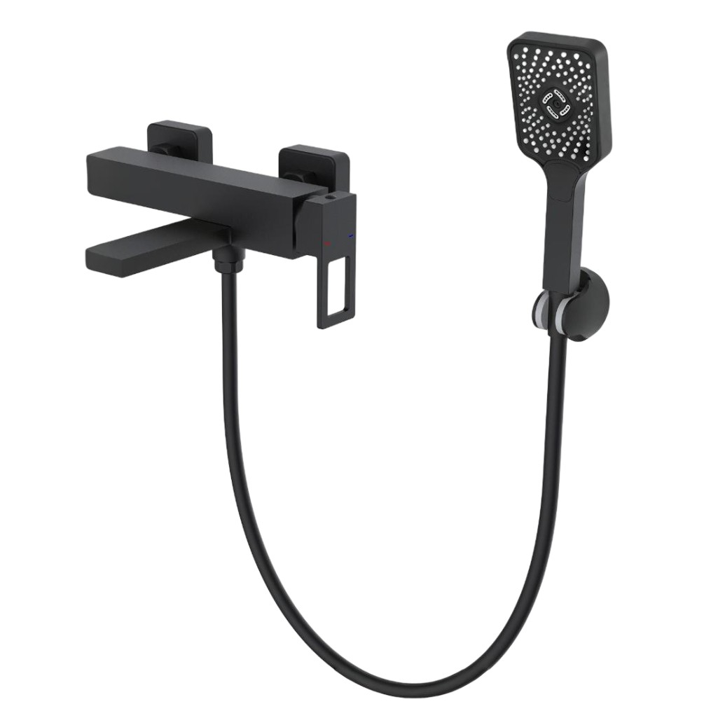 Смеситель для ванны Econoce EC0813BL картридж D35-A, с душевым гарнитуром, однорычажный, цинк, цвет черный