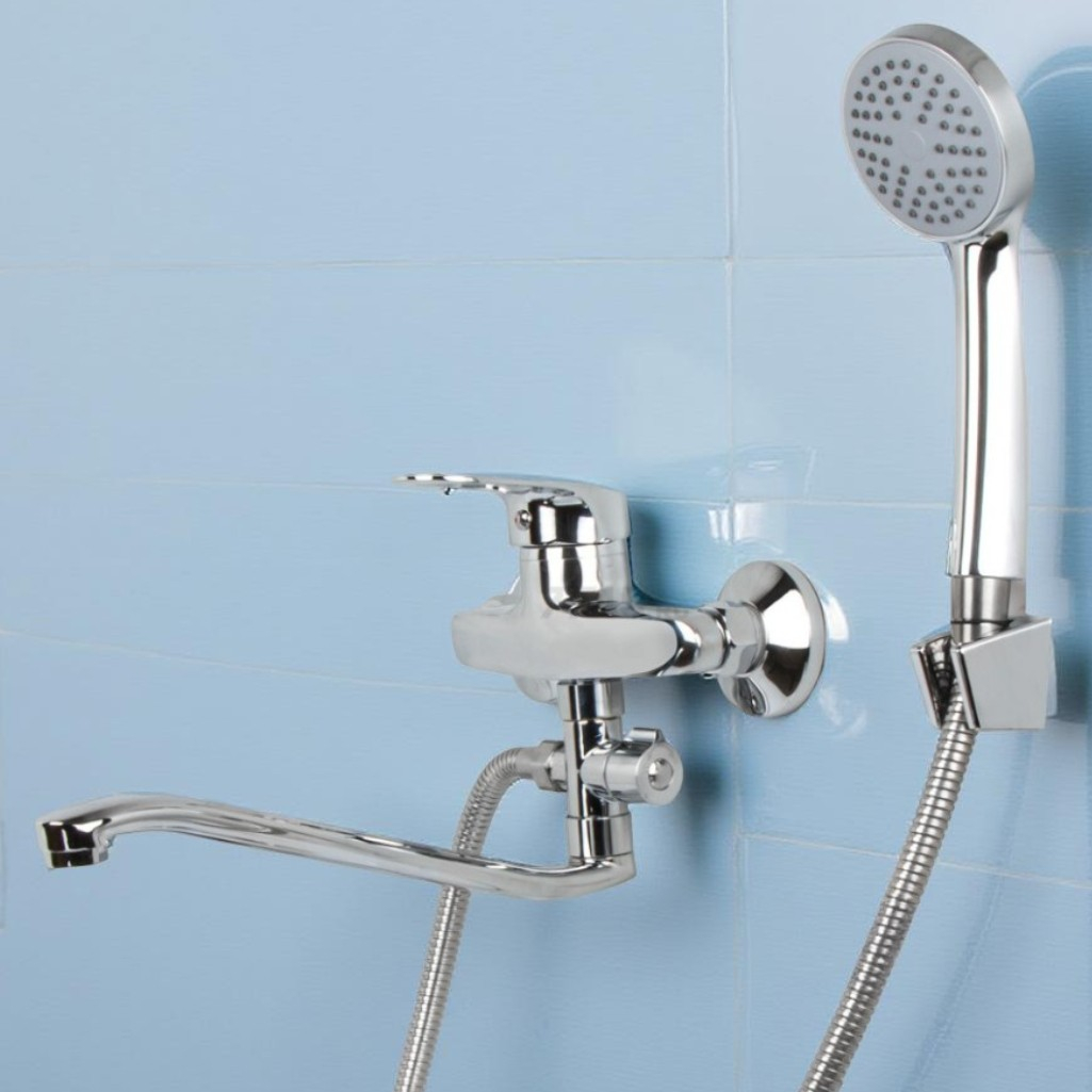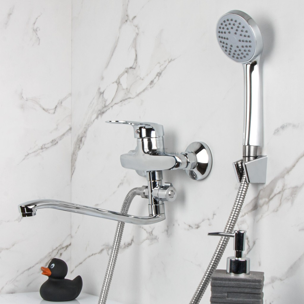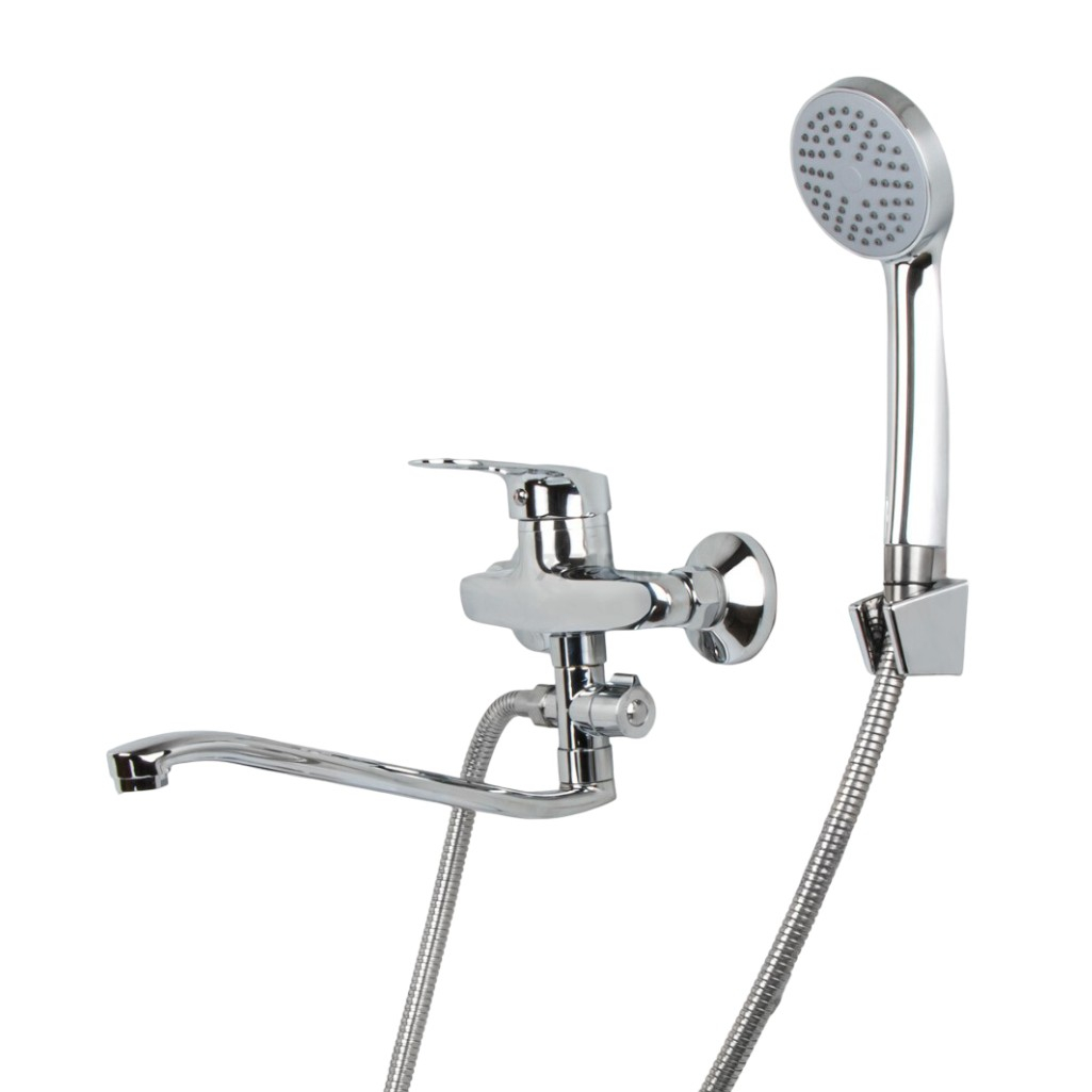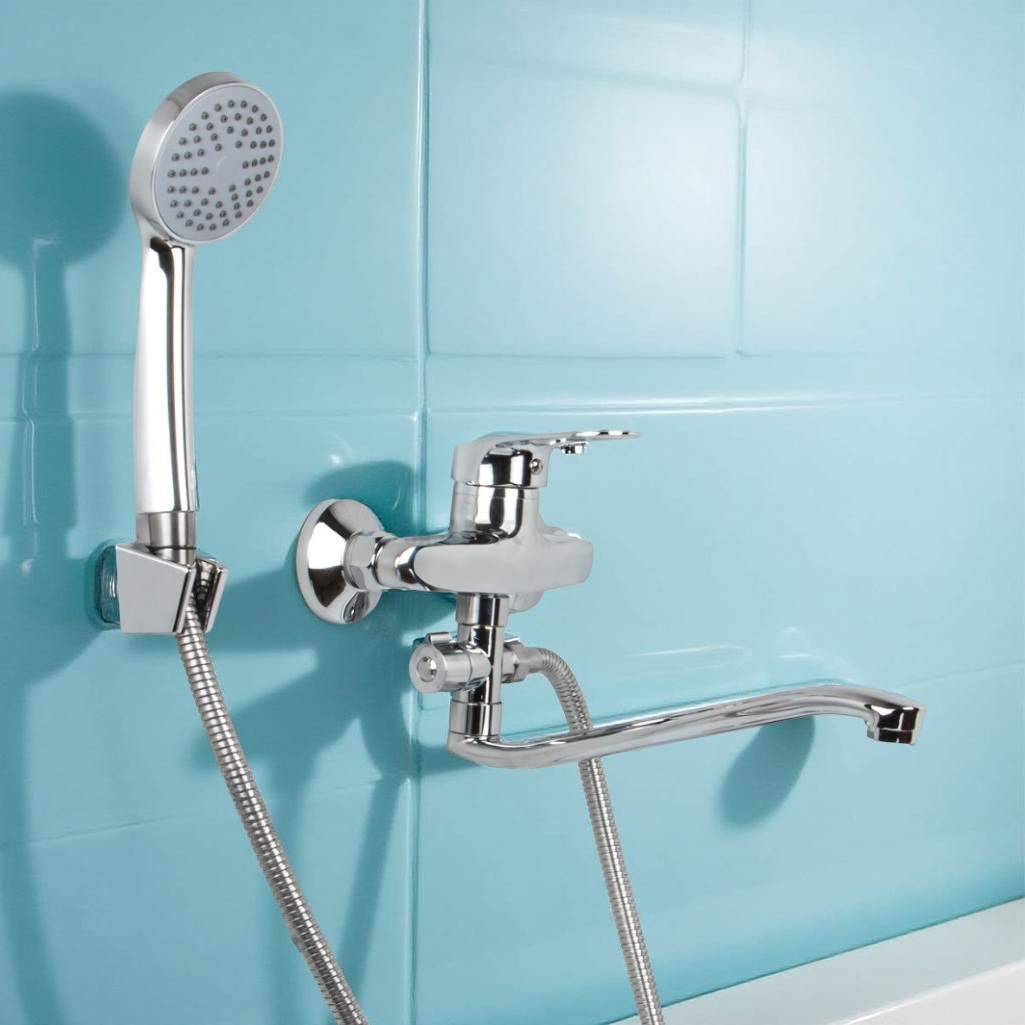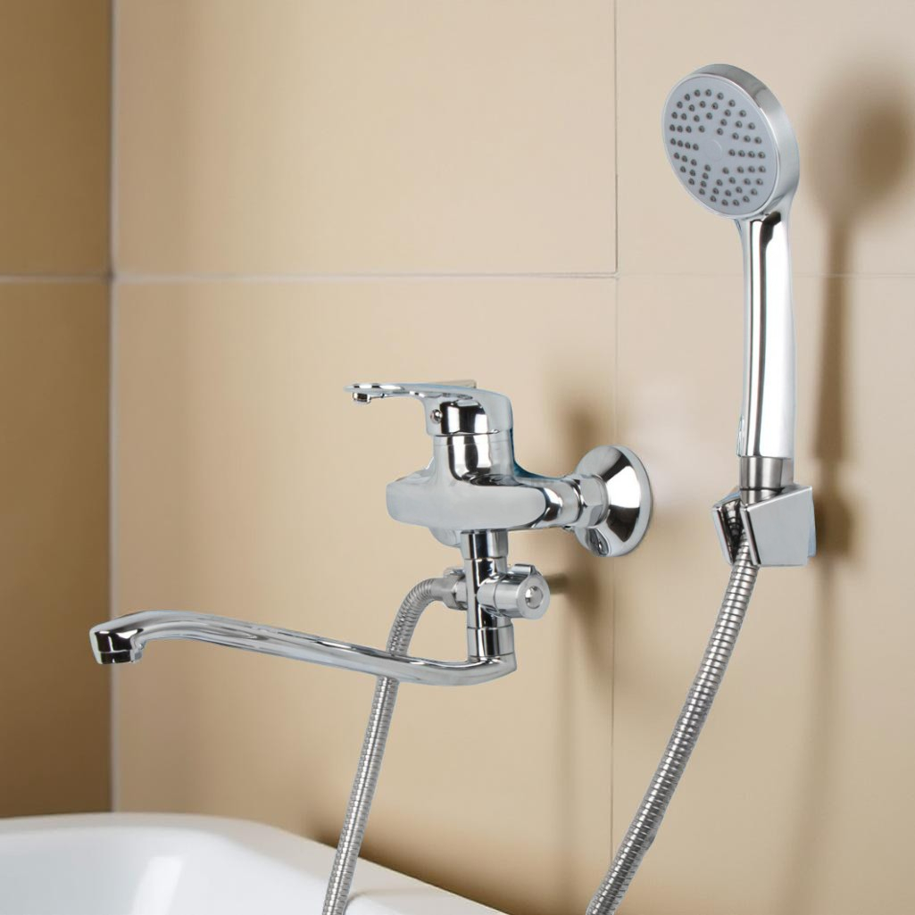 Смеситель для ванны Econoce EC0240 картридж D40-A, с душевым гарнитуром, однорычажный, цинк, цвет хром