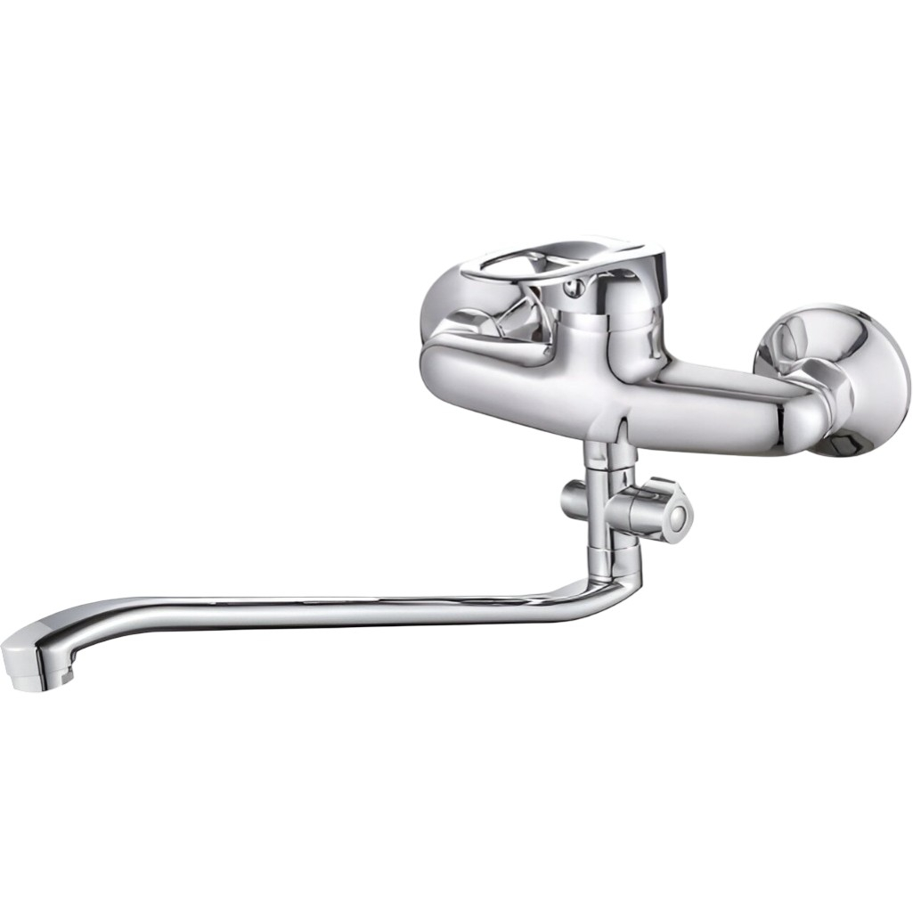 Смеситель для ванны Econoce EC0240 картридж D40-A, с душевым гарнитуром, однорычажный, цинк, цвет хром предназначен для использования в ванной комнате. Этот стильный и функциональный аксессуар оснащен длинным поворотным L-изливом, который обеспечивает удобство использования. Смеситель выполнен из надежного цинка методом литья в песчаную форму. Он доступен в хромированном исполнении, что придает ему элегантный и современный вид. Для монтажа смесителя используются эксцентрики. Картридж D40-A с запорным механизмом гарантирует долгий срок службы и стабильную работу. Рукоятка позволяет регулировать температуру и напор воды благодаря углу поворота в 25° по вертикали и 50° по горизонтали. Водосберегающий аэратор помогает фильтровать воду и насыщать её кислородом. Шланг выполнен из нержавеющей стали, лейка - из пластика.  Специальные эксцентрики упрощают и ускоряют монтаж смесителя на стену. Модель выполнена в классическом хромированном цвете, который легко вписывается в любой интерьер ванной комнаты.
