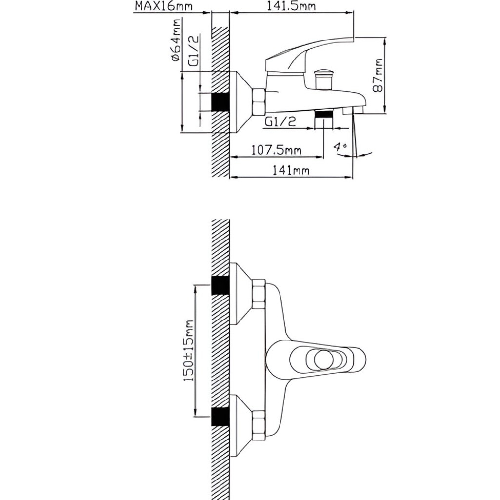 Технические характеристики смесителя для ванны AV Engineering AVURS3-A120-330 Lt D35 серия URS, с душевым гарнитуром, латунь, цвет хром