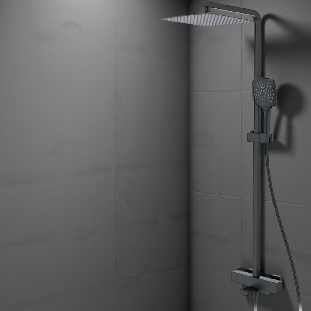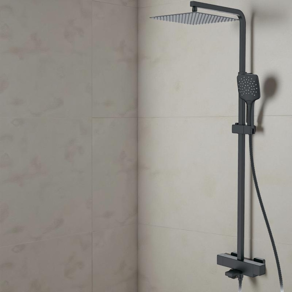 Описание душевой системы Gappo G2417-60, цвет черный, термостат, тропический дождь