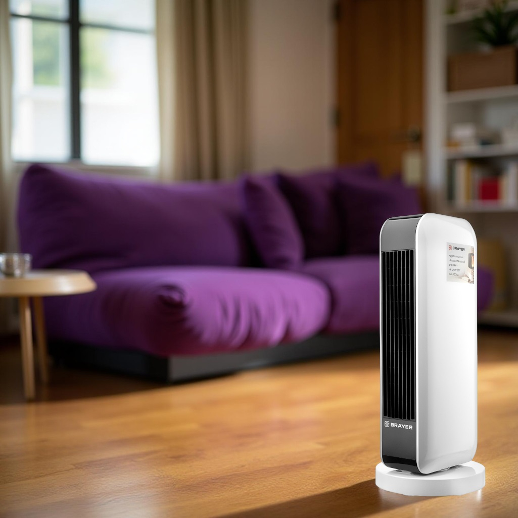 Керамический нагревательный элемент бережно нагревает воздух, не пересушивая его, не сжигая кислород и не поднимая пыль, тем самым поддерживая комфортный микроклимат в помещении. На экране отображается текущий режим работы. Также предусмотрена возможность установки таймера на период от 0,5 до 7,5 часов. Тепловентилятор имеет защиту от перегрева: функция автоматического отключения при превышении допустимой температуры нагрева делает агрегат безопасным для эксплуатации. В ситуации, если аппарат упадет на пол, сработает защита от опрокидывания, которая выключит тепловентилятор. В комплект поставки входит пульт дистанционного управления, благодаря которому взаимодействие с тепловентилятором Brayer 4802BR станет максимально комфортным и приятным.