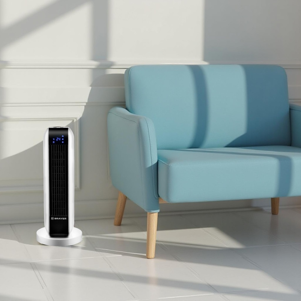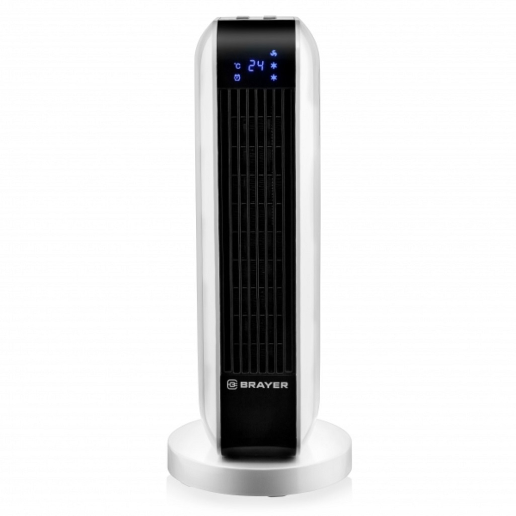 Тепловентилятор керамический Brayer 4802BR напольный 2000 Вт, белый с черным предназначен для нагрева воздух в помещении площадью до 20 кв.м. Устройство предлагает 3 режима работы: подача холодного, теплого и горячего воздуха. В зимний период оно обеспечит уют и тепло, а летом подарит приятную прохладу, если переключиться на режим вентилятора. Тепловентилятор поворачивается на 35 градусов, что обеспечивает эффективное распределение воздушного потока на обширной площади.