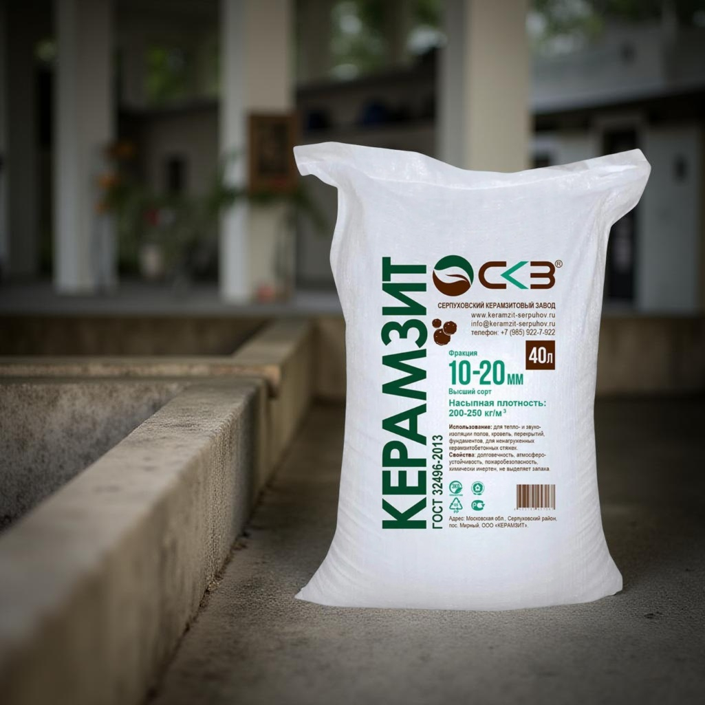 Керамзит, фракция 10-20 мм СКЗ, для строительства, мешок 40 литров