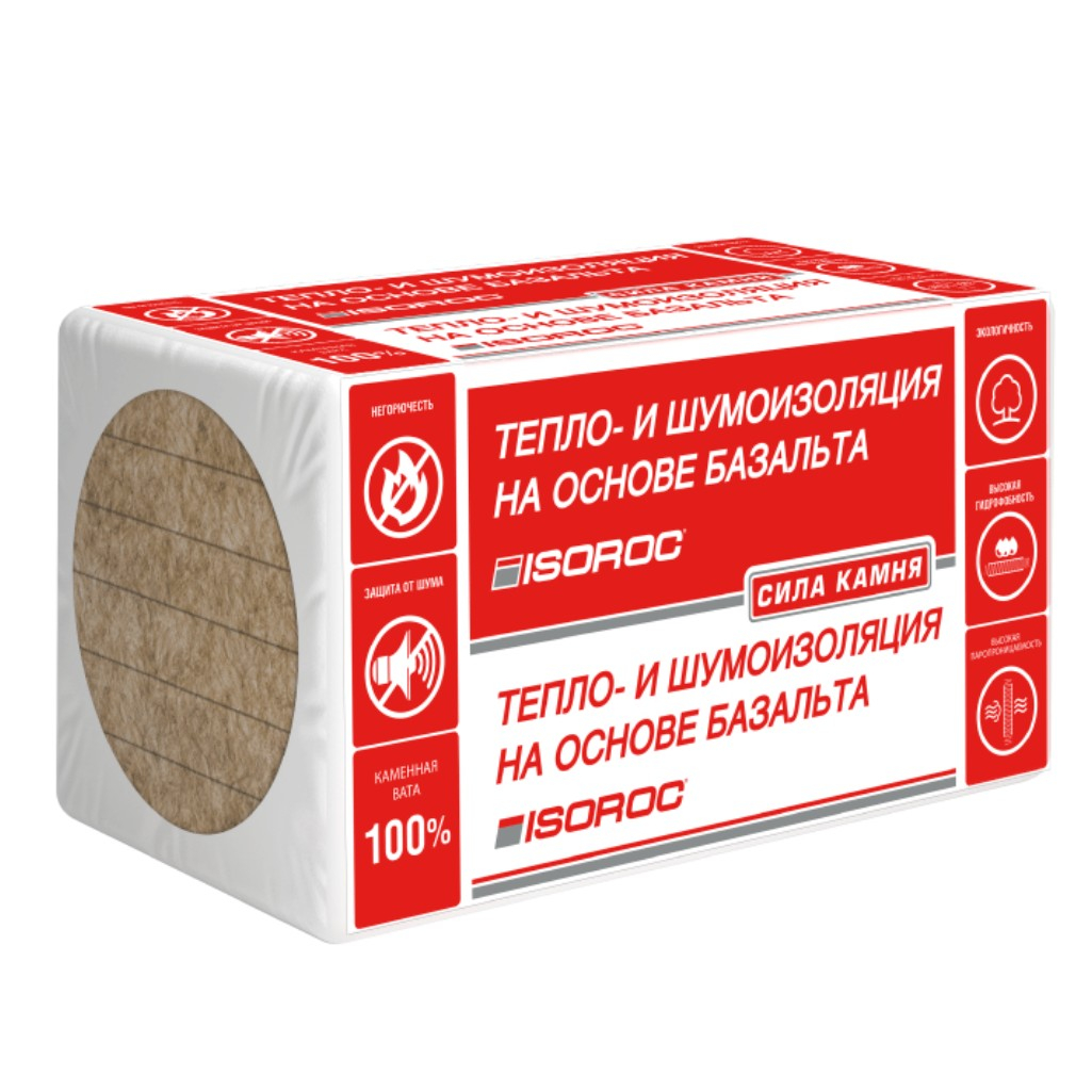 Утеплитель Isoroc ПП-80 для пола, перегородок, кровли, стен 50х600х1000 мм, 3,6 кв.м, 6 плит