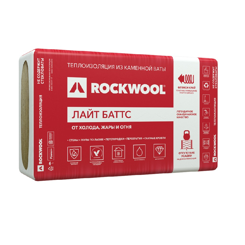 Утеплитель Rockwool Лайт Баттс для перекрытий, стен 100х600х1000 мм, 3 кв.м, 5 плит - это легкий и эффективный минераловатный утеплитель, специально созданный для теплоизоляции ненагружаемых конструкций в вашем доме или квартире. Благодаря уникальной технологии Флекси, один край плиты поджимается и разжимается, что упрощает монтаж материала в конструкциях на деревянном или металлическом каркасе. Пружинный край удобно располагается с длинной стороны плиты (1000 мм), а ширина кромки составляет 50 мм, что позволяет легко монтировать утеплитель.