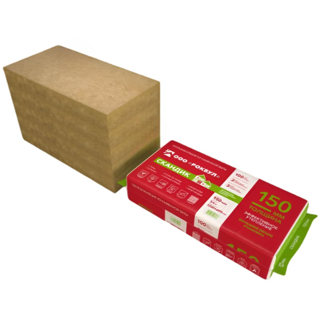 Описание утеплителя Rockwool Скандик для стен, пола, перекрытий, 150х600х1200 мм, 3.6 кв.м, 5 плит