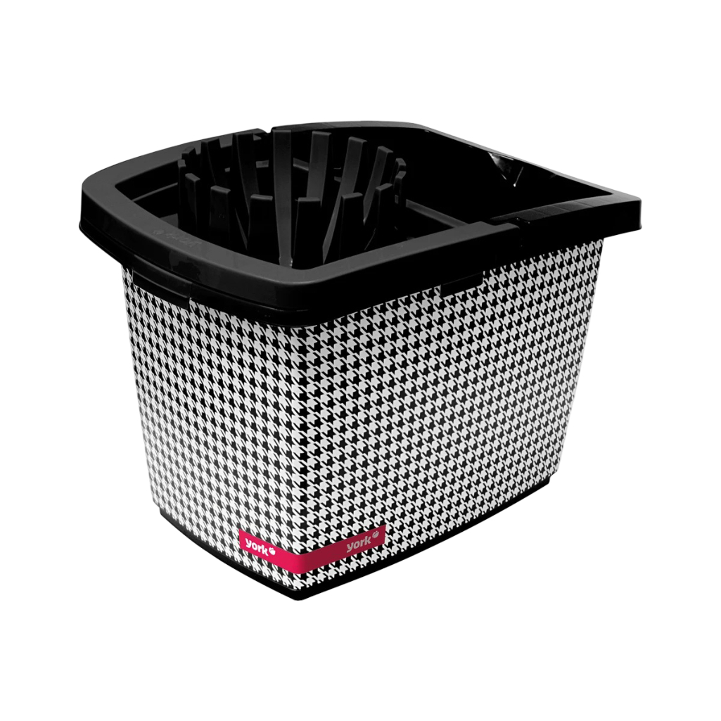 Описание ведра York Пепита 071210, объем 10 литров, пластик, вставка отжим МОП, цвет Черно-белый