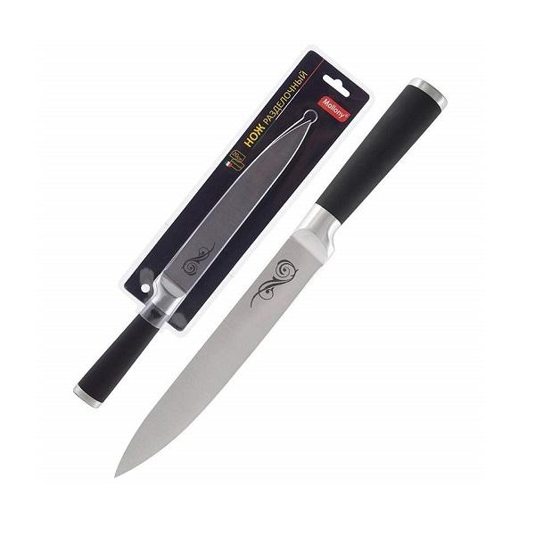 Нож разделочный лезвие 20 см ручка прорезин. кованый с рис. MAL-02RS Mallony BL 985362