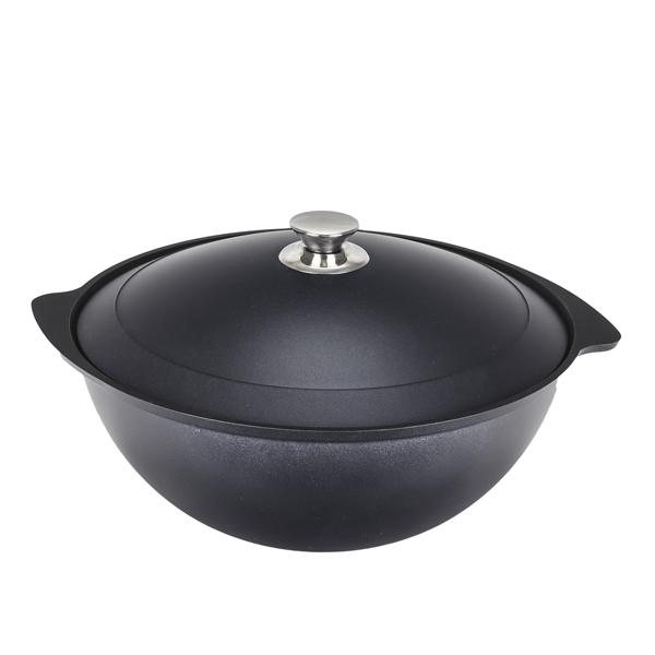 Казан для плова"Kukmara" изготовлен из литого алюминия и покрыт высококачественным антипригарным покрытием на водной основе, усиленным сверхпрочными минеральными частицами.