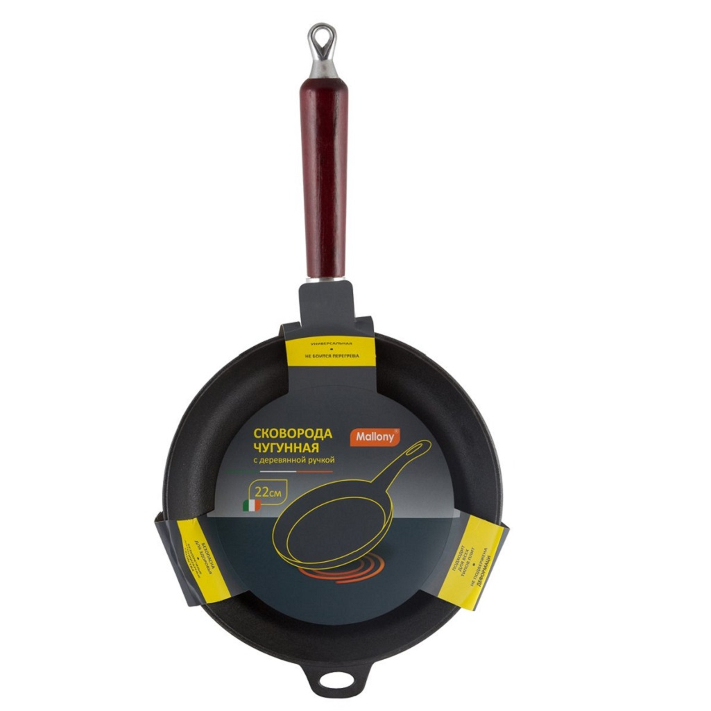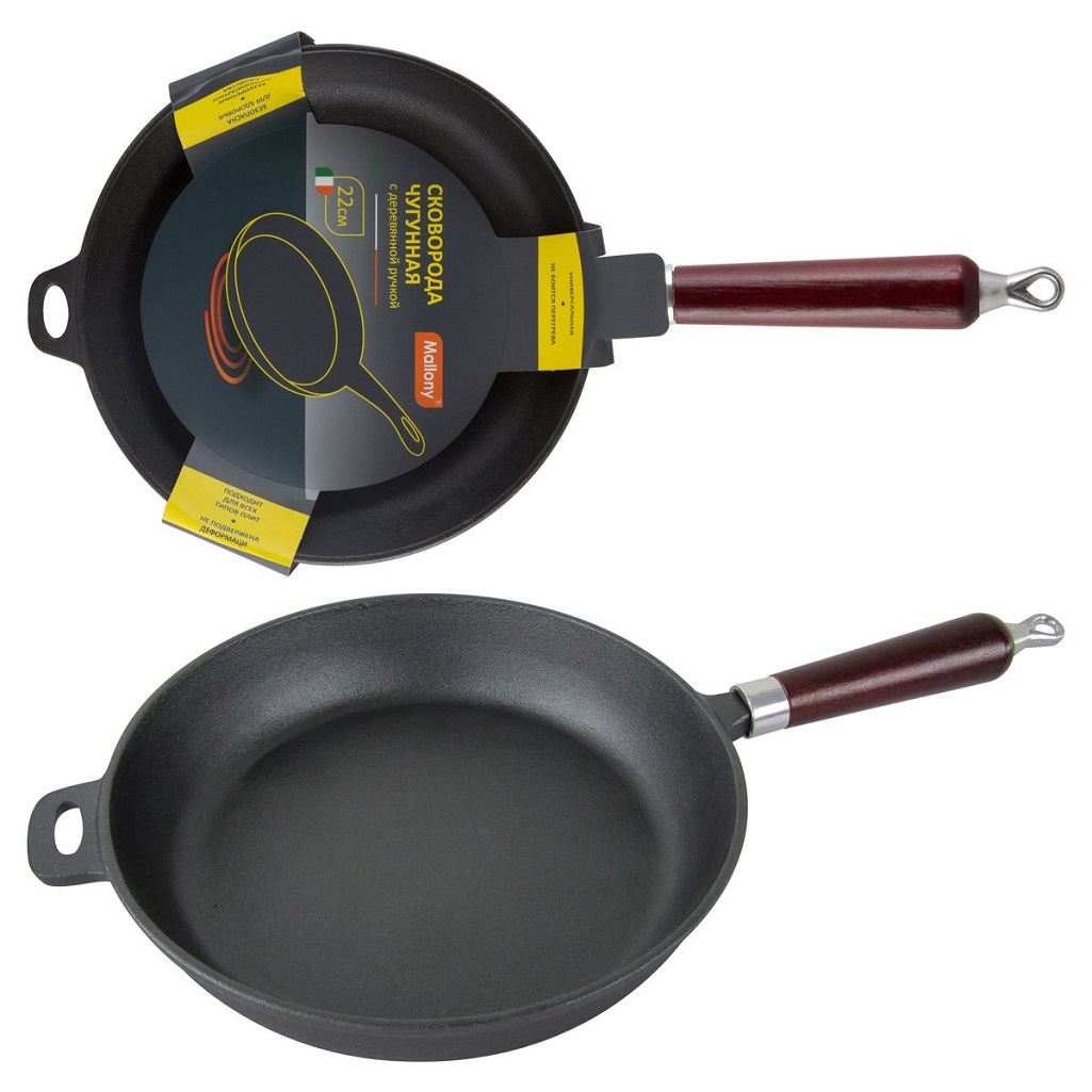 Описание сковороды Mallony CIF22-W, диаметр 220 мм, с деревянной ручкой