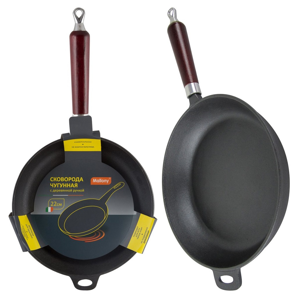 - Сковорода MALLONY чугунная с деревянной ручкой 220мм