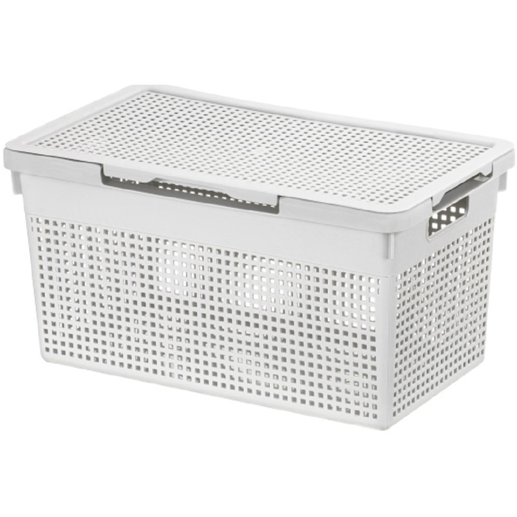 Корзина с крышкой El Сasa Лофт 562108 узкая 812155, 235х265х455 мм, 21 л, светло-серая предназначена для создания уютного и функционального домашнего пространства. Корзина оснащена удобными ручками для переноски, а крышка надёжно фиксируется в двух положениях: по узкой или широкой стороне. Можно легко менять положение крышки в зависимости от потребностей, обеспечивая удобный доступ к содержимому с любой стороны. Благодаря универсальному дизайну, этот бокс идеально впишется в интерьер любой комнаты: гардеробной, ванной или прихожей. Изготовленный из пищевого пластика (полипропилена), органайзер отличается прочностью и лёгкостью. Он не выделяет вредных веществ и абсолютно безопасен для использования на кухне, в детской комнате или в любом другом помещении. В этом универсальном контейнере можно хранить не только овощи и фрукты, но и кухонные принадлежности, бытовую химию и моющие средства. Он также отлично подойдёт для косметики и мелких предметов. Декоративные отверстия обеспечивают доступ воздуха, предотвращая порчу продуктов. Этот контейнер можно использовать для хранения белья, полотенец и других мелочей. Его можно разместить под раковиной в ванной, возле стиральной машины, на полке или в шкафу. Корзина с крышкой El Сasa Лофт 562108 812155 станет незаменимым помощником в офисе для хранения документов и бумаги формата А4, а также в гараже или на даче для инструментов.