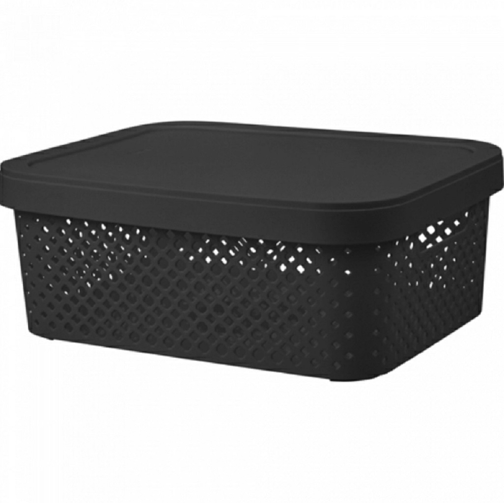 Корзина для хранения Plast Team Black с крышкой, 10 л, черная