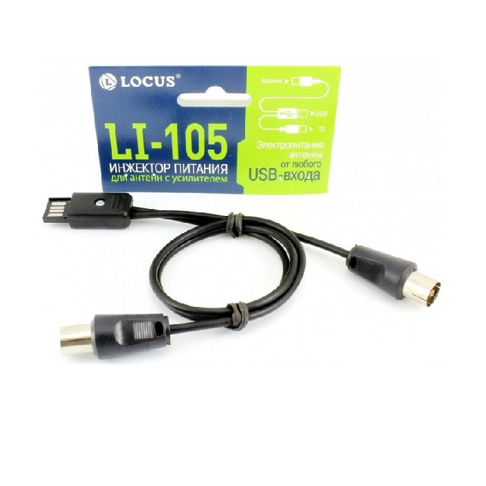 Инжектор питания Locus LI-105 для электропитания телевизионных антенн с встроенным усилителем, также подходит для удаленно расположенных канальных усилителей от розетки USB любого устройства.