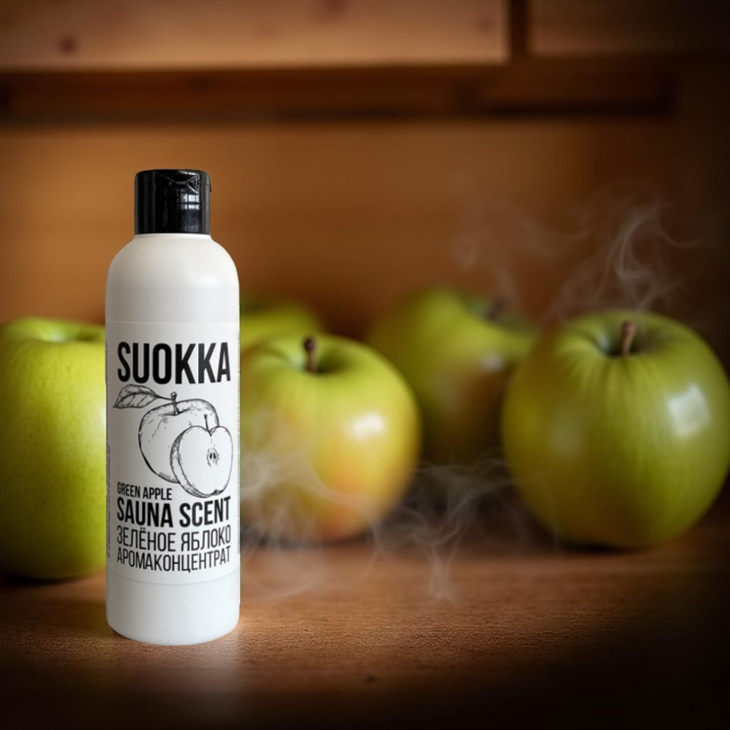 Описание аромаконцентрата Suokka Зеленое яблоко, для бани и сауны, для ароматерапии, объем 200 мл