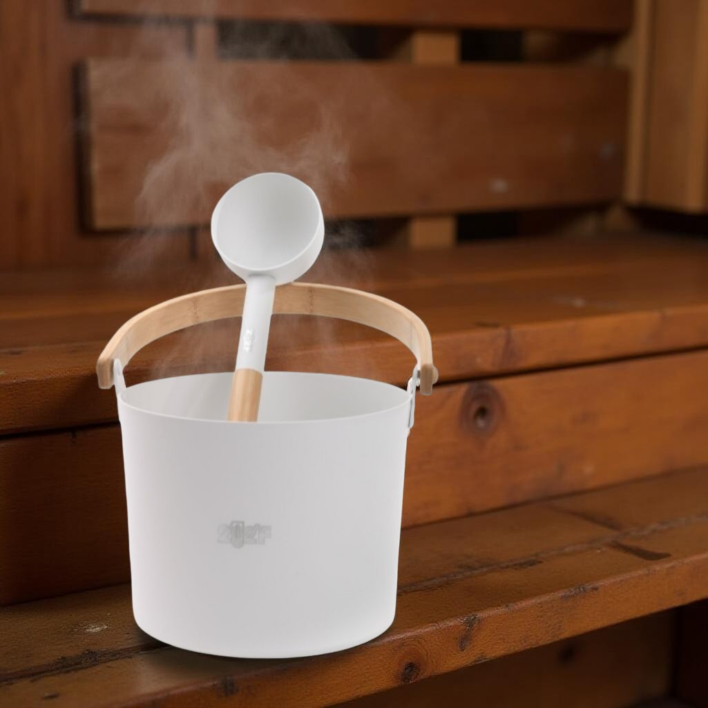 - Набор 212F "SIMPLE WHITE" шайка 5л и черпак 0,2л (алюминий, ручки бамбук)