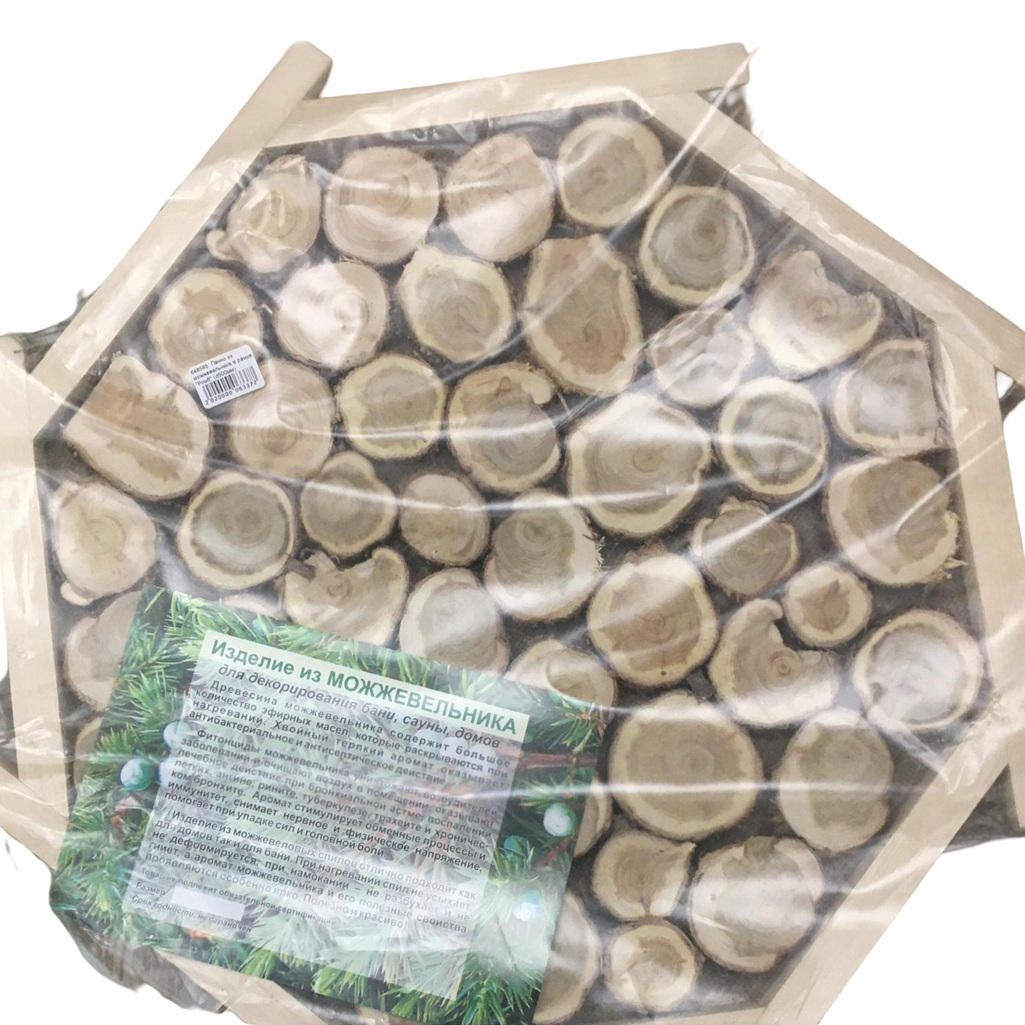 Панно Ромб, Можжевельник, в рамке, для бани и сауны, диаметр 500 мм, дерево подходит для декорирования бани, сауны или дома. Панно выполнено из древесины можжевельника, которая содержит много полезных эфирных масел, раскрывающихся при нагревании.Хвойный аромат положительно влияет на нервную систему и органы дыхания. При нагревании можжевеловые спилы выделяют антисептические вещества, которые предотвращают размножение микроорганизмов в помещении. Можжевельник — это высококачественный материал для отделки парной, обладающий повышенной влагостойкостью. Панно из можжевельника по праву считается одним из оптимальных решений для парных и саун, так как материал прекрасно выдерживает перепады температур и влажности, отличается превосходными визуальными характеристиками, устойчив к появлению плесени и грибка.