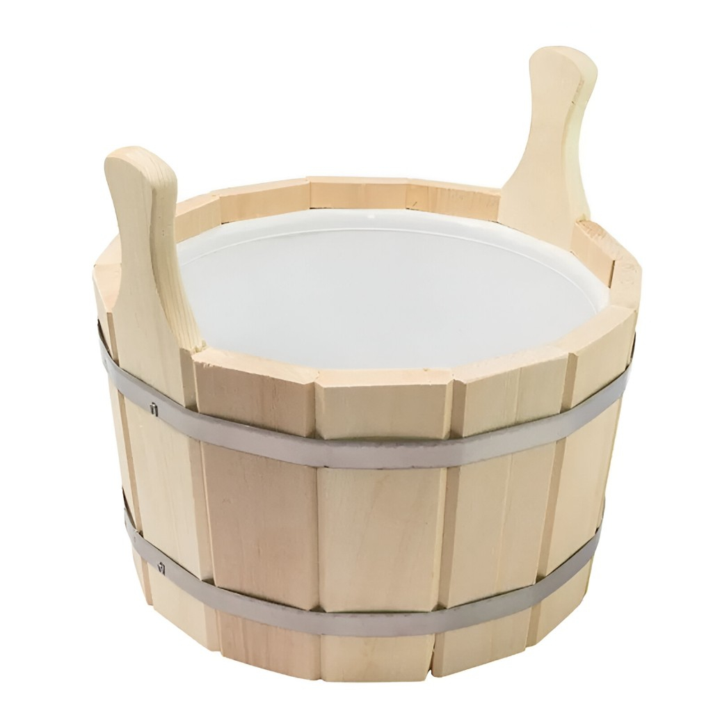 Описание шайки для бани и сауны, R-SAUNA ПЛ-14, объем 12 л, Липа, вставка из пластика, дерево