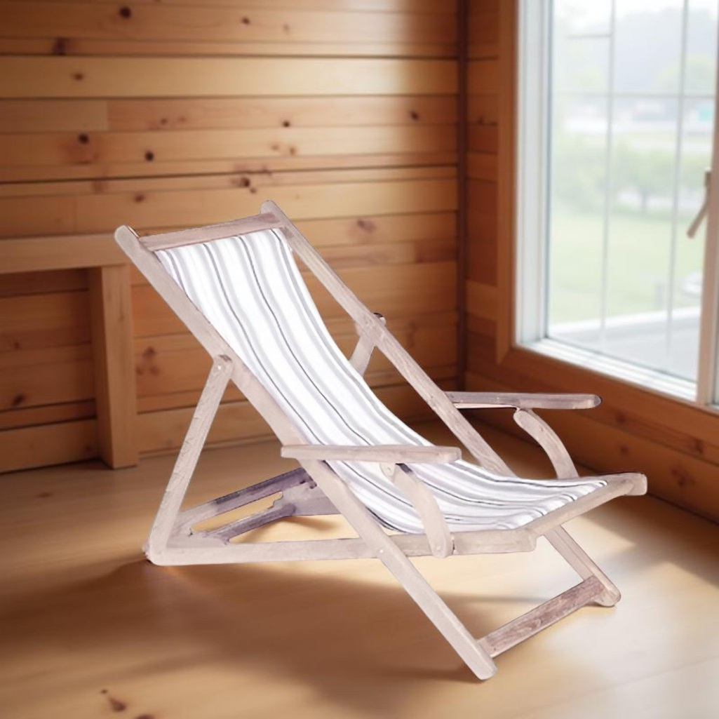 Описание шезлонга, Липа, с подлокотниками, для отдыха, для бани и сауны, ткань, дерево