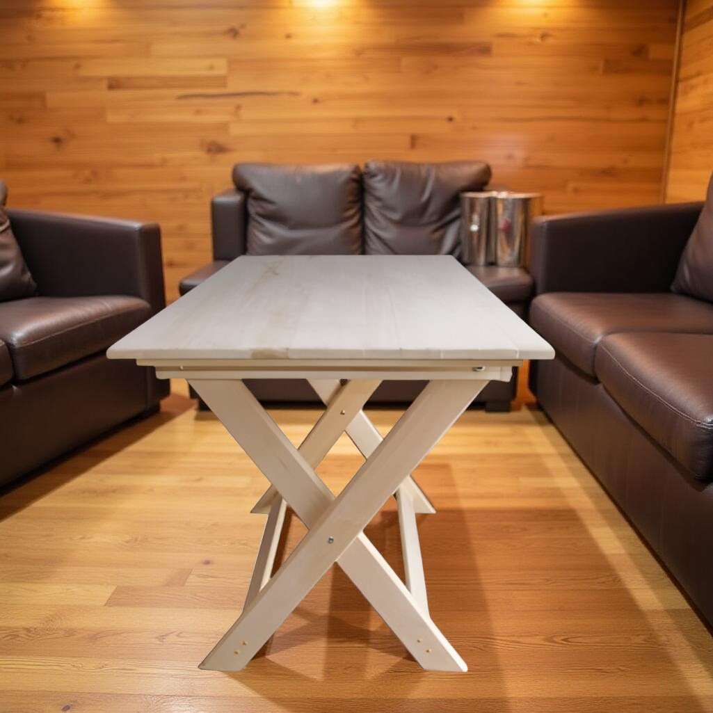 Стол прямоугольный, Липа, для бани и сауны, раскладывается, 600х755х1000 мм, дерево выполнен из массива дерева. Стол складывается в одно движение. Липа обладает антибактериальными свойствами, что делает её идеальным материалом для использования в банях, где важна высокая степень гигиены. Гипоаллергенность липы исключает риск аллергических реакций и выделения вредных веществ. Низкая теплопроводность материала предотвращает ожоги, так как липа не нагревается сильно даже при высоких температурах. Древесина липы отличается красивой текстурой и светлым оттенком, который придаёт столу эстетическую привлекательность. Экологичность липы делает её безопасным для окружающей среды материалом. Мягкий и успокаивающий аромат липы создаёт приятную атмосферу в бане или сауне.