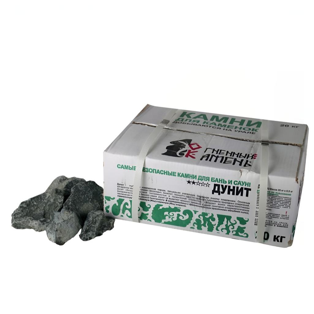 Ультраосновная горная порода магматического происхождения, состоящая из оливина и пироксена. Выдерживает значительные температурные нагрузки. Дунит и перидотит характеризуются крайне низкими концентрациями потенциально вредных элементов и поэтому являются абсолютно безопасными. В печах бань дунит укладывается на самое дно.