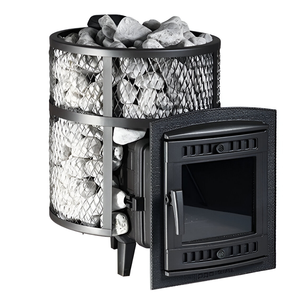 - Печь банная чугунная "Атмосфера М" сетка из нержавейки (8-14м3. d115/140мм)