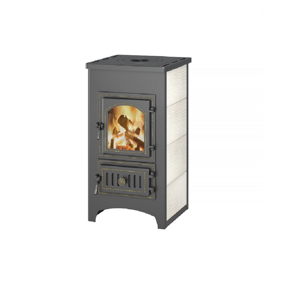 Печь-Камин Везувий ПК-01 270 бежевый с конфоркой и теплообменником, 9 кВт, d115 мм, до 150 куб.м