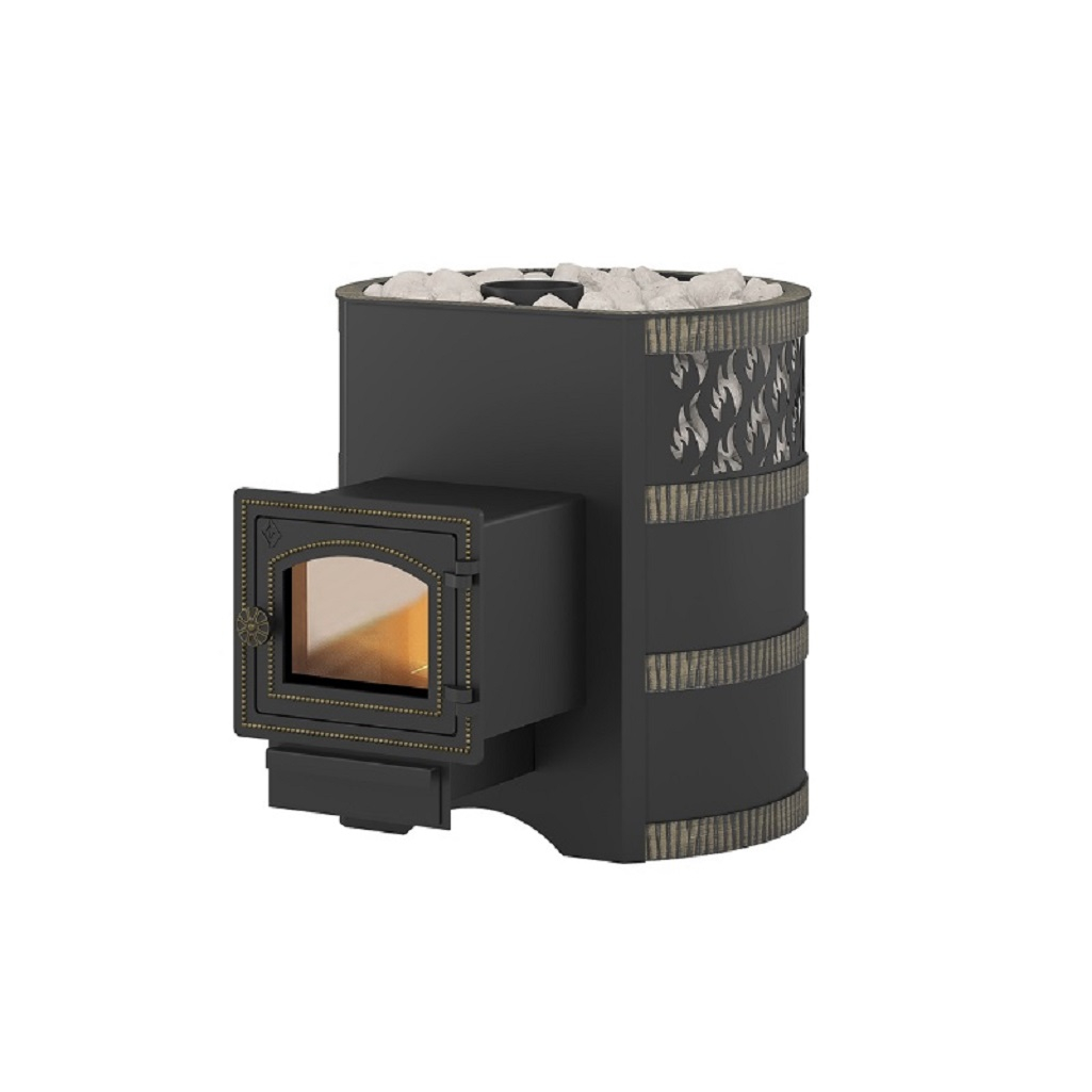Кожух из стального листа и кованых стальных колец обеспечивает конвекцию открытой каменки и дополнительно защищает от жёсткого инфракрасного излучения. В верхней части кожуха для усиления движения воздуха предусмотрены прорезные отверстия в виде языков пламени.