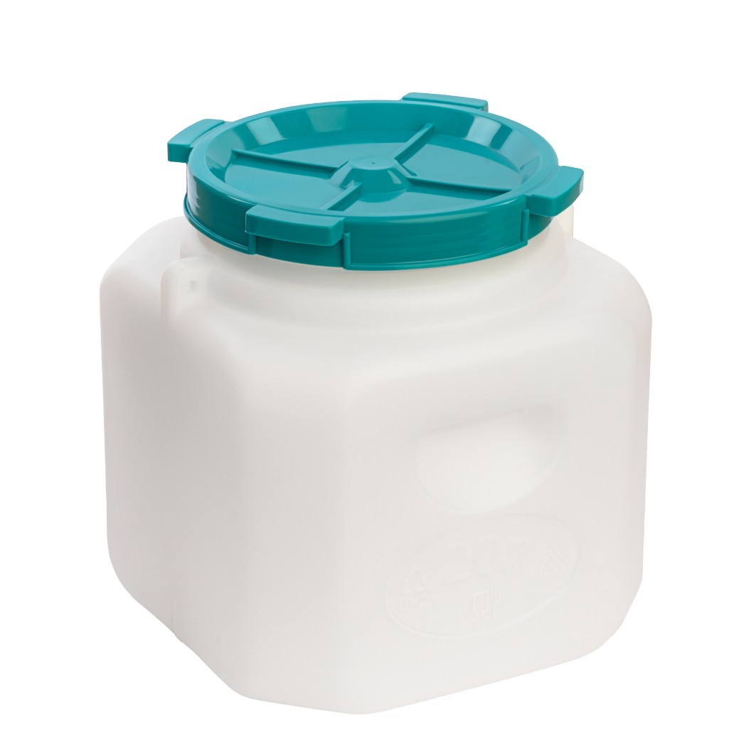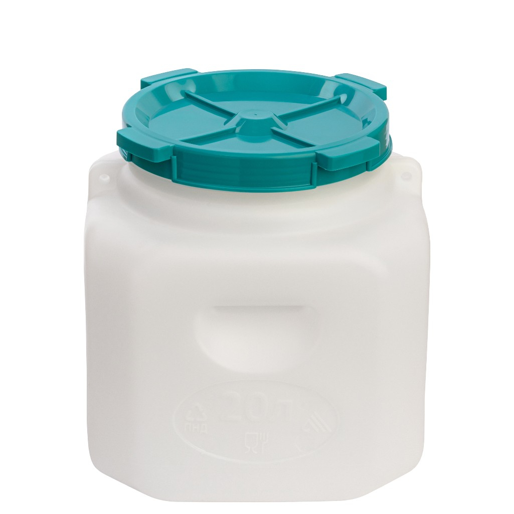 - Канистра-бочка АЛЬТЕРНАТИВА пластиковая,пищевая,прямоугольная,с широким горлом 20л