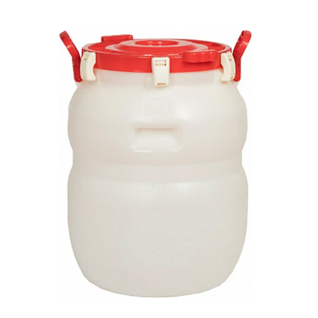 Бочка пищевая Радиан 60 л, пластиковая, с ручками, широкое горло, белый с красным