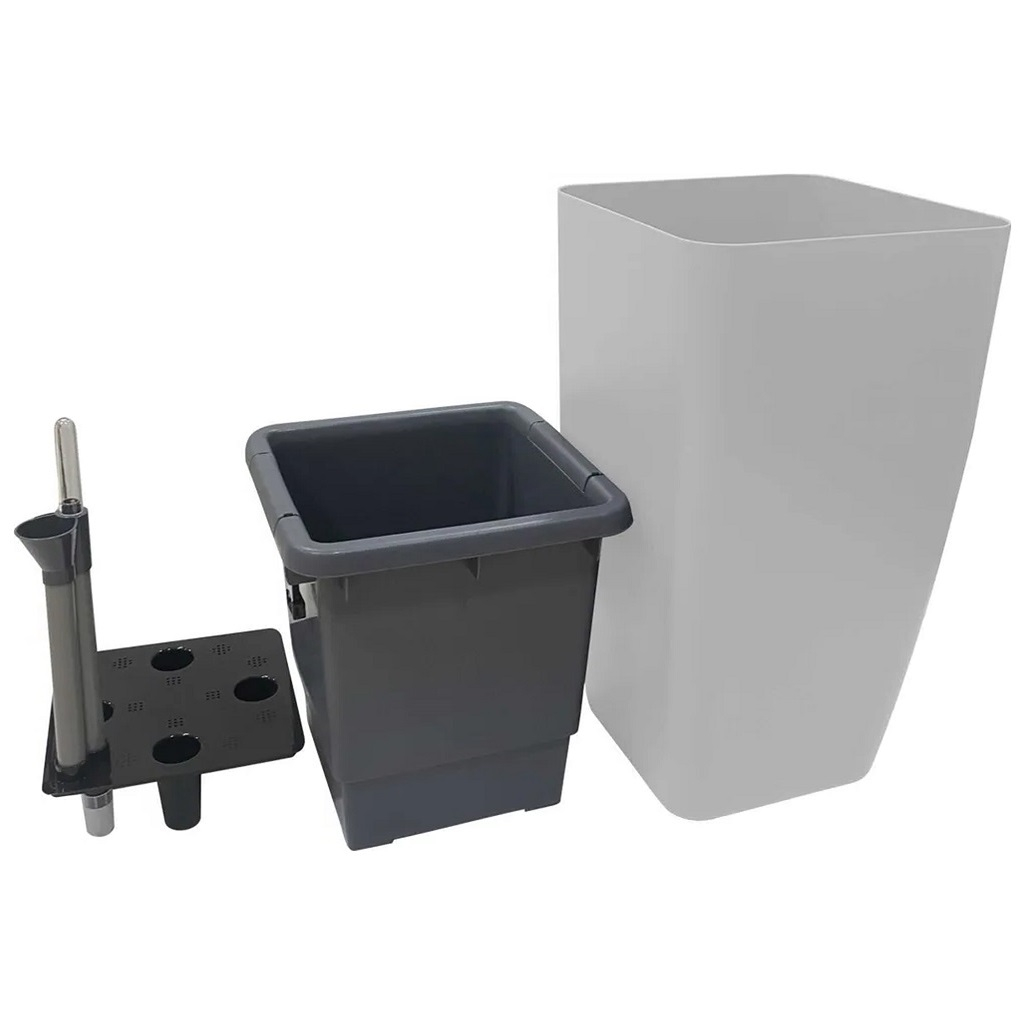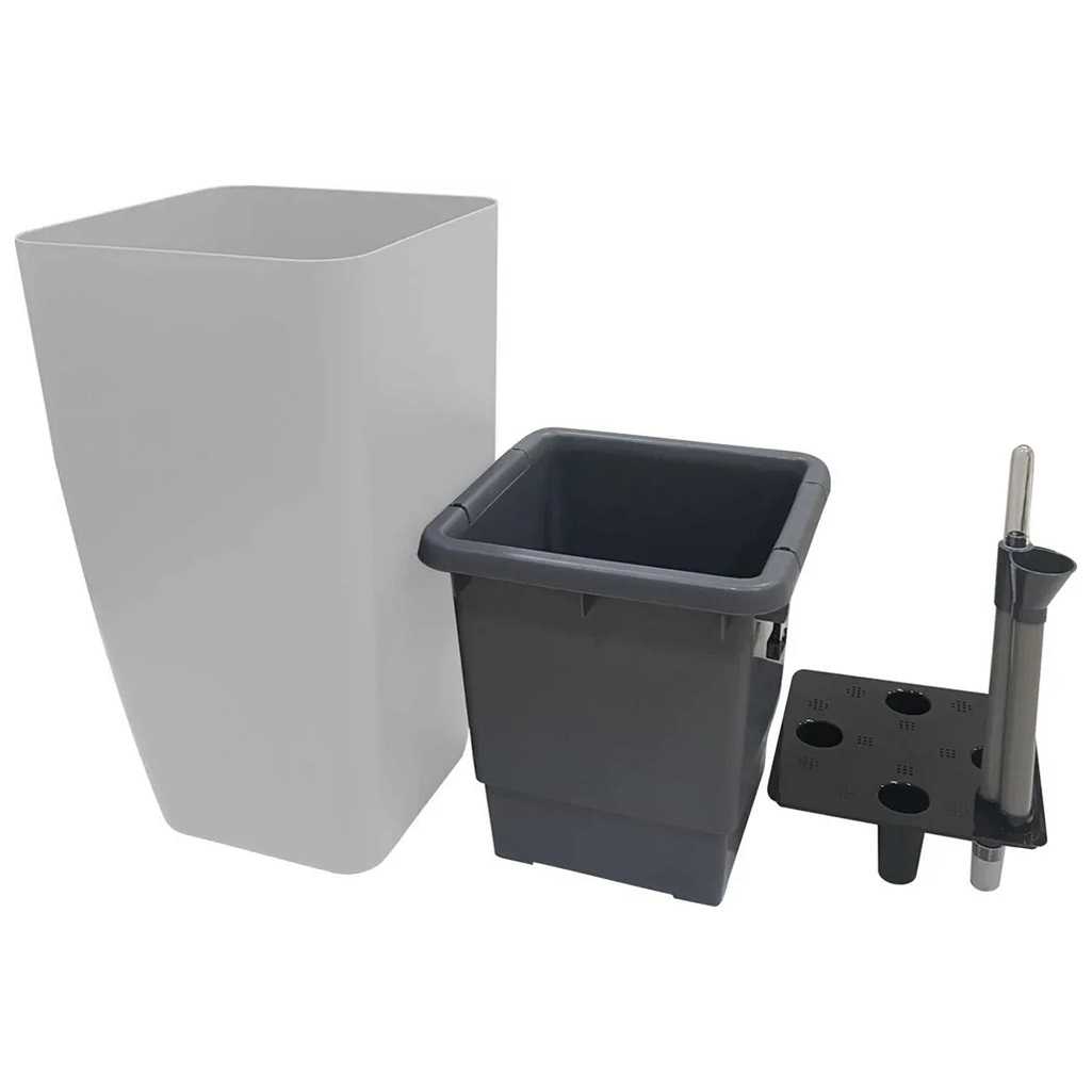 - Горшок INGREEN Munchen с автополивои и вставкой, квадратный, утренний туман 8/20 л