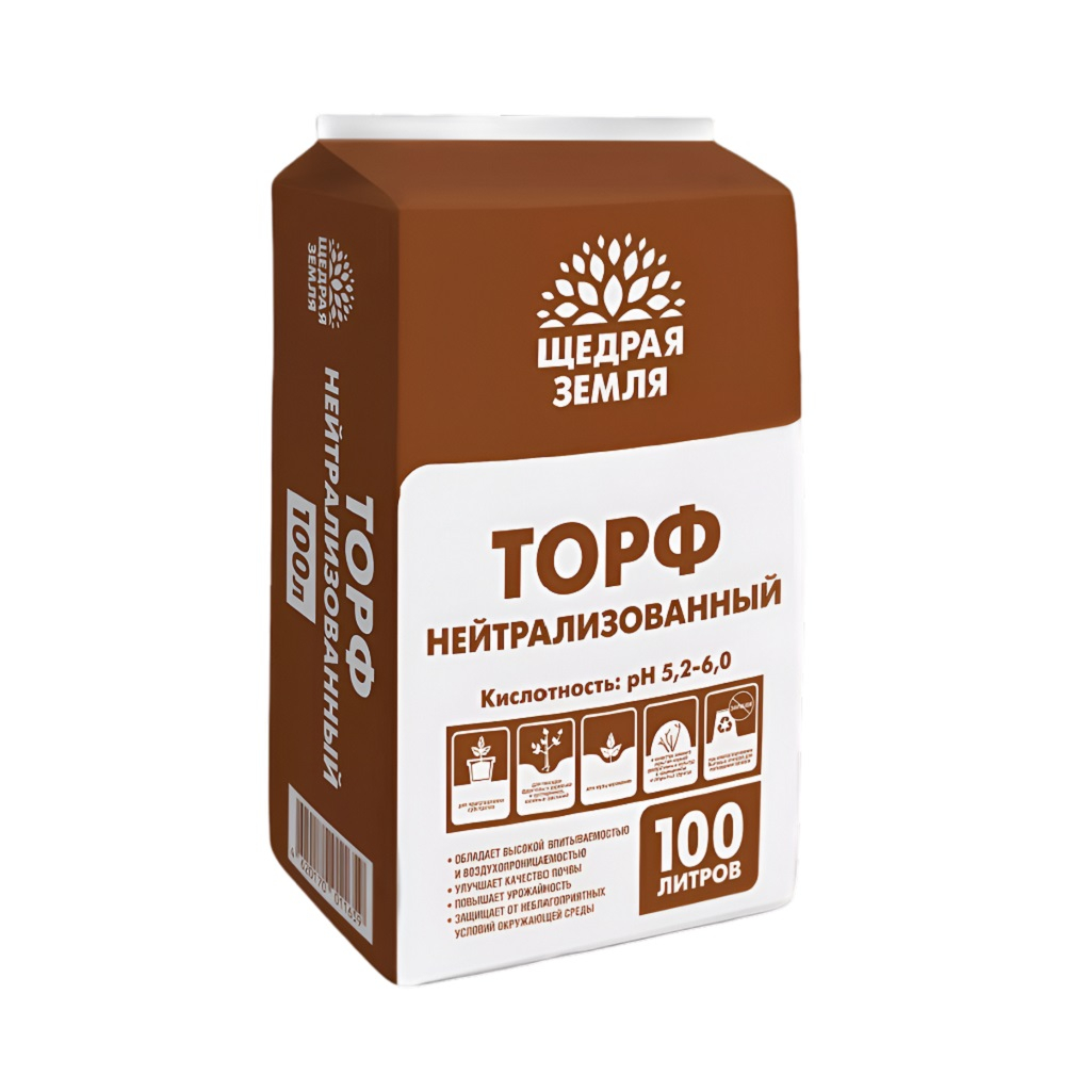 Торф нейтрализованный Фаско Щедрая Земля 100 л прессованный брикет, для выращивания рассады - это готовый к применению торф. Прессованный торф с нейтрализованной кислотностью — это ценное органическое удобрение, которое используется для приготовления субстратов и улучшения структуры почвы, а также для повышения содержания органических веществ в ней. Благодаря своей высокой влаго- и воздухопроницаемости, торф с нейтрализованной кислотностью создаёт оптимальные условия для роста растений как в щелочных, так и в кислых почвах. Важно отметить, что в составе этого органического материала отсутствуют вредители и сорняки. Кроме того, торф с нейтрализованной кислотностью активно применяется для компостирования бытовых отходов, что делает его незаменимым материалом для использования в теплицах и оранжереях.