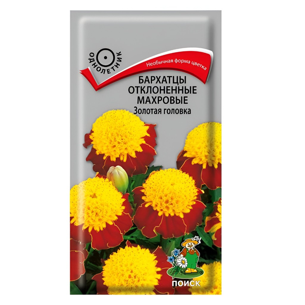 Семена цветов Бархатцы отклоненные махровые Золотая головка, Поиск, для открытого грунта, 0.4 гр в Москве