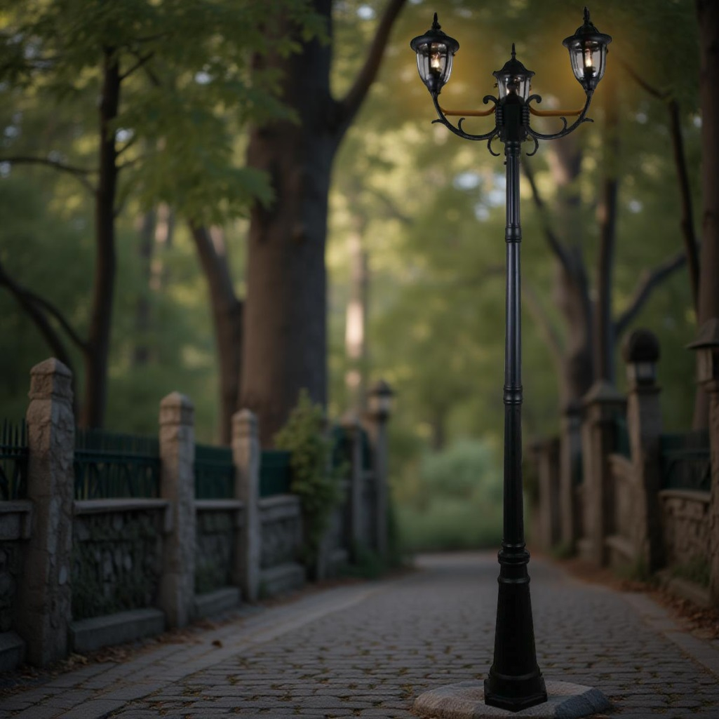 Светильник уличный Reluce 00867-0.7-001SL 2,0M ВК ландшафтный, 60 Вт, Е27, IP44, черный предназначен для оформления садов и парков, украшения уличных композиций, декорирования придомовых территорий. Площадь освещения составляет примерно 3 кв.м. Светильник крепится на грунт, основание имеет высоту 200 см. Конструкция 3-х плафонов, которые выполнены в классическом стиле, защищает стеклянную часть от осадков. Плафоны и основание светильника изготовлены из металла. Лампа накаливания мощностью 60 Вт обеспечит яркий свет на территории и общая мощность светильника составит 180 Вт. Маркировка IP44 означает защиту устройства от проникновения пыли, однако, светильник не защищен от сильного дождя или полного погружения в воду.